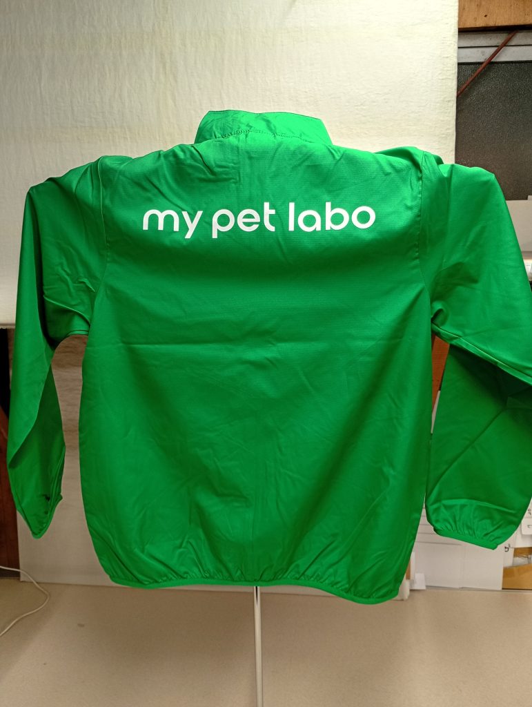 「my pet labo」オリジナルジャケット制作事例 hdr 商品カテゴリ: 3 商品: 1286 利用シーン: 加工位置: プリント(左胸、背中) 加工サイズ: 100mm×15mm、300mm×45mm 加工方法: カメオカからのコメント: