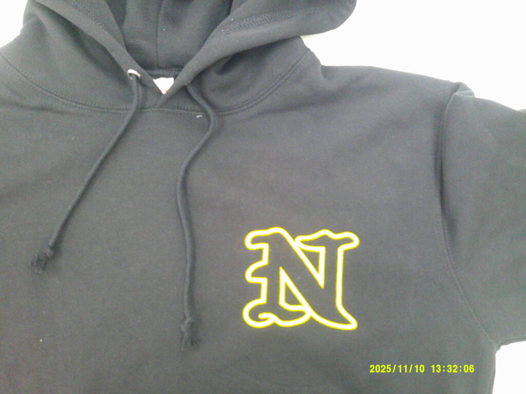 「N 2025 The best team」オリジナルパーカー制作事例 Digital Camera 商品カテゴリ: 7 商品: 2635 利用シーン: 加工位置: 刺繍(背中裾、左胸、左袖) 加工サイズ: 背中裾:120mm×60mm、左胸:100mm×88mm、左袖:70mm×20mm 加工方法: カメオカからのコメント: