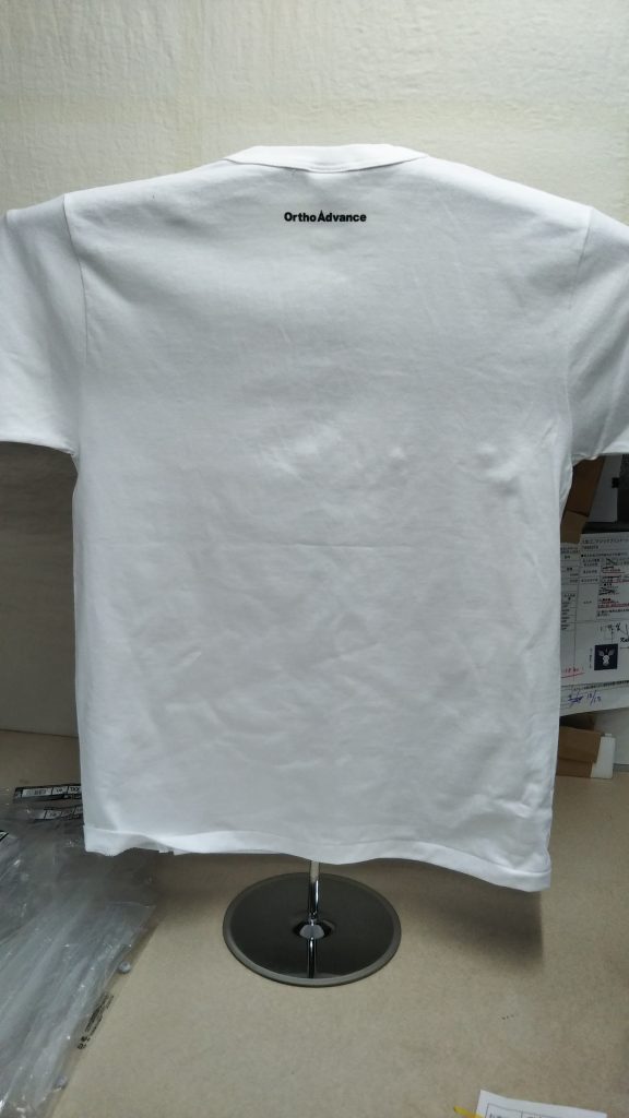 「Ortho Advance」オリジナルTシャツ制作事例 DSC_5721 商品カテゴリ: 8 商品: 2818 利用シーン: 加工位置: プリント(背中衿下) 加工サイズ: 71mm×10mm 加工方法: カメオカからのコメント: