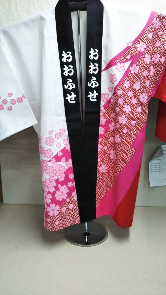 オリジナルはっぴ制作事例 オリジナルプリント DSC_5139 DSC_5140 商品カテゴリ: 1 商品: 17 利用シーン: 加工位置: 両衿 加工サイズ: 横:40㎜×縦:185㎜ 加工方法: プリント カメオカからのコメント: