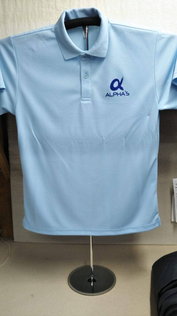 「αALPHA’S」オリジナルポロシャツ制作事例 DSC_5172 商品カテゴリ: 4 商品: 504 利用シーン: 加工位置: 左胸 加工サイズ: 横:80㎜×縦:66㎜ 加工方法: プリント カメオカからのコメント: