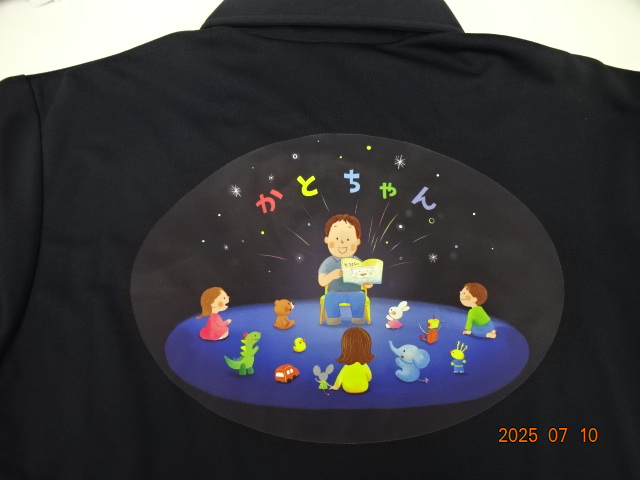 「かとちゃん(kato kikaku)」オリジナルポロシャツ制作事例 商品カテゴリ: 4 商品: 831 利用シーン: 加工位置: 左胸・左袖・背中 加工サイズ: 胸:横80㎜×縦30㎜ 袖:横80㎜×80㎜ 背中:横300㎜×縦200㎜ 加工方法: 刺繍・転写プリント カメオカからのコメント: