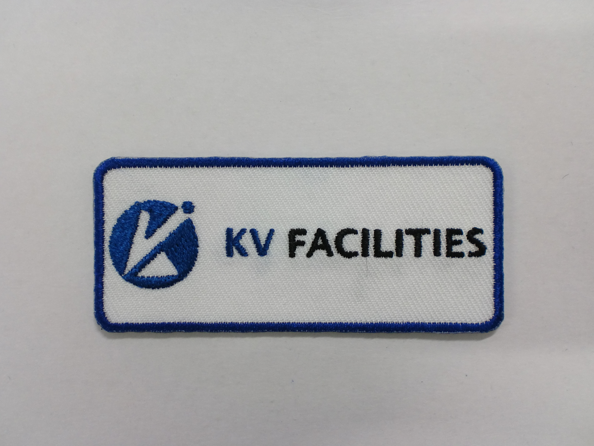 「KV FACILITIES」オリジナル刺繍ワッペン制作事例 商品カテゴリ: 277 商品: 利用シーン: 加工位置: 刺繍 加工サイズ: 横:70㎜×縦:30㎜ 加工方法: オリジナルワッペン カメオカからのコメント: