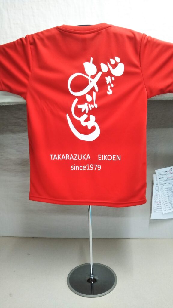 「心からありがとう TAKARAZUKA EIKOEN」オリジナルTシャツ制作事例 DSC_5326 商品カテゴリ: 8 商品: 531 利用シーン: 加工位置: 背中 加工サイズ: 横:265㎜×縦:350㎜ 加工方法: プリント カメオカからのコメント: