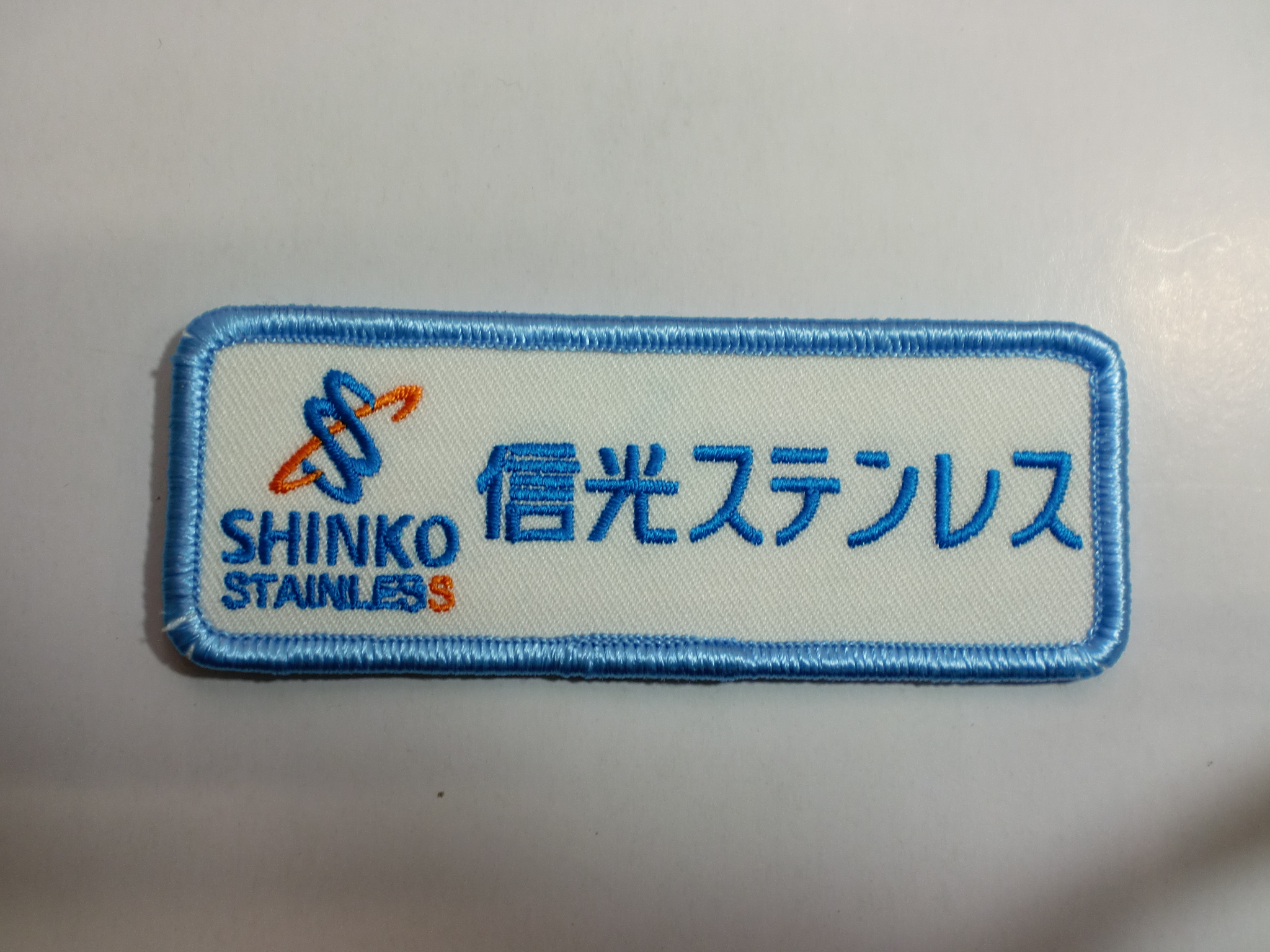 「信光ステンレス」ロゴネームワッペン制作事例 商品カテゴリ: 277 商品: 利用シーン: 加工位置: 刺繍 加工サイズ: 横:93㎜×縦:35㎜ 加工方法: ロゴネームワッペン カメオカからのコメント: