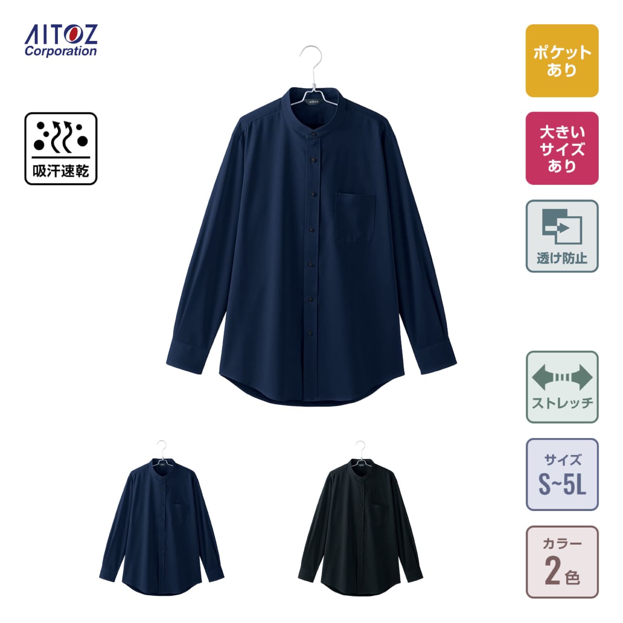 メンズ長袖スタンドカラーシャツ