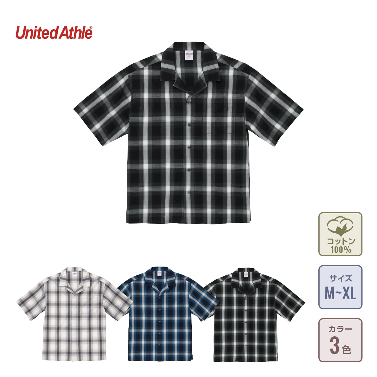 コットン オープンカラー ショートスリーブ シャツ