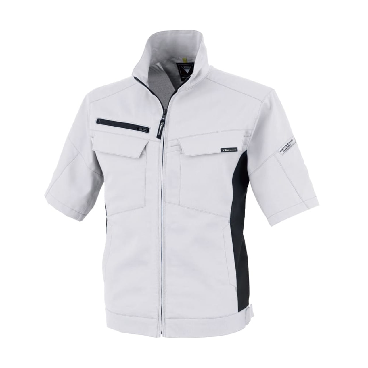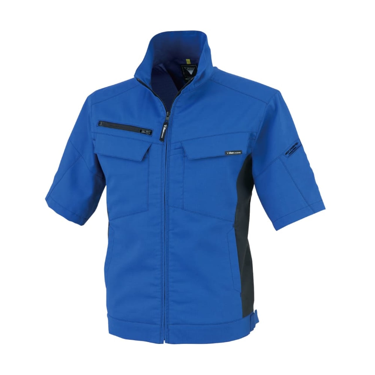 スポーティなデザインで清潔感のある印象を与える夏用ブルゾンです。ほどよいフィット感の美しいシルエット設計ながら、優れたストレッチ性により抜群の動きやすさを備えた一着になっています。裏面には吸湿性のある綿素材を使用しているため、汗をかいても肌に貼りつきにくく、汗ばむシーンでもさらりと快適に。JIS T 8118の規格に適合した帯電防止性能を備え、静電気の発生が危険につながる現場をはじめ、幅広い現場で安全に着用いただけます。