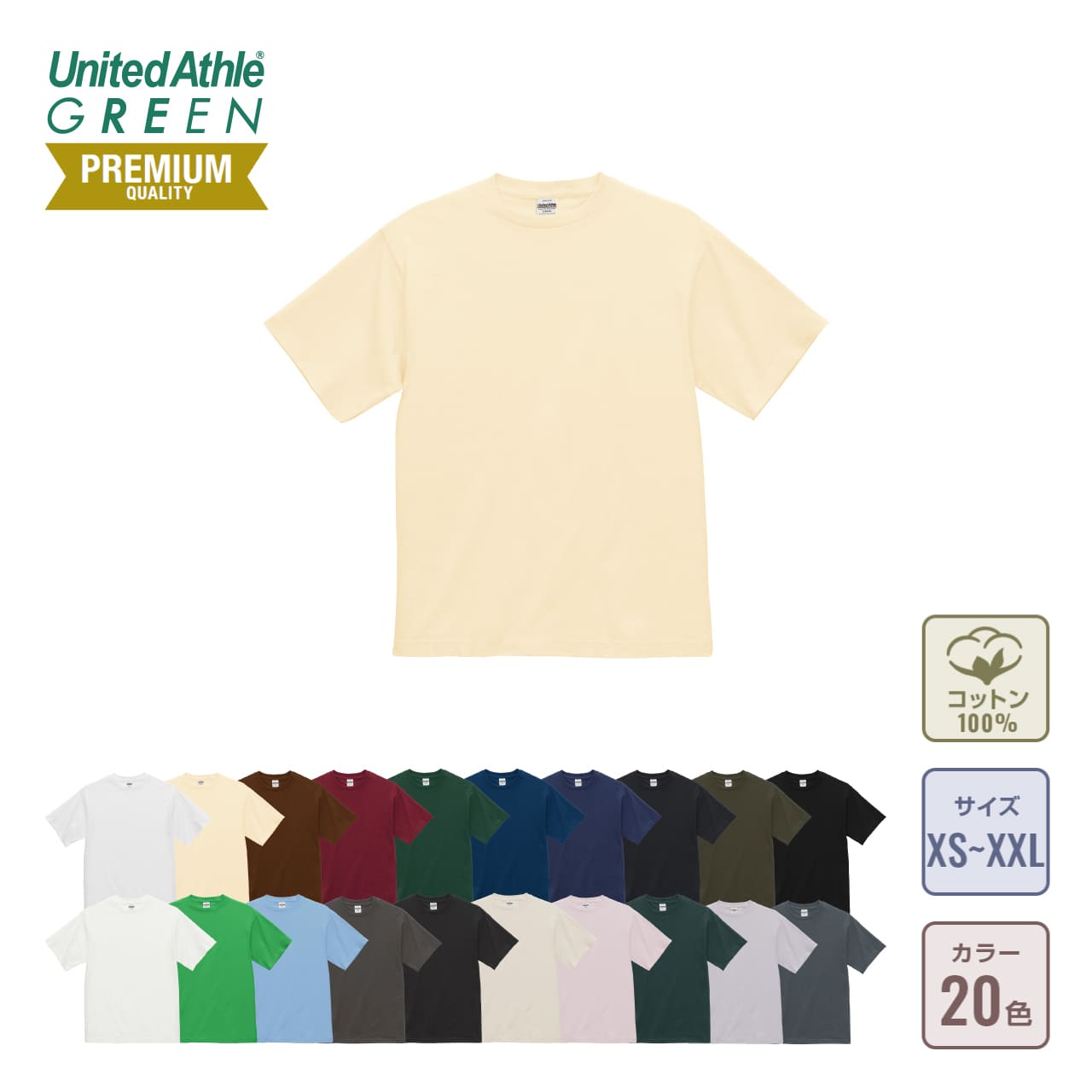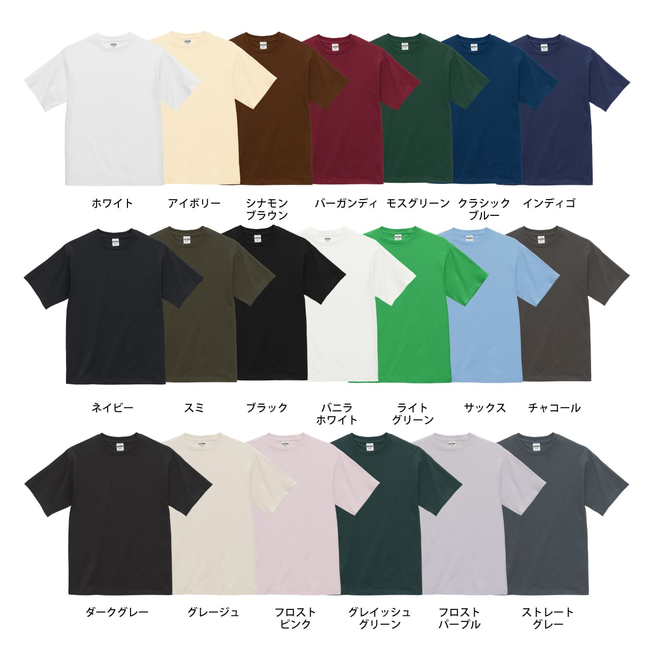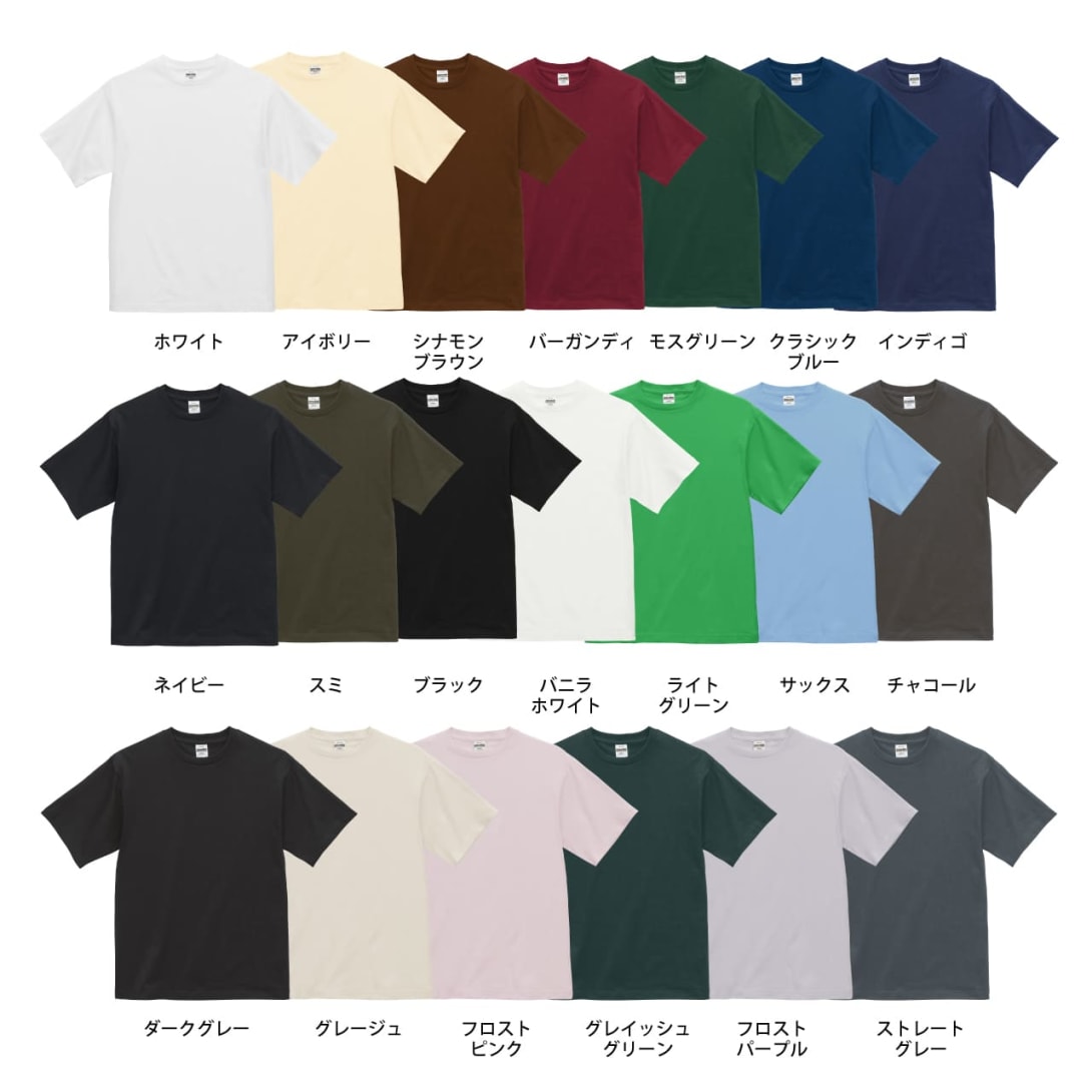 1100-01は、シンプルながらも上質さを感じられる一枚です。厚手の6.5オンス生地は耐久性が高く、長期間の使用に耐えます。特にコンパクトコーマ糸を使用しているため、刺繍やプリント加工を施した際も美しい仕上がりが得られます。15色展開の豊富なカラーバリエーションがあり、どんなシーンでも活躍する万能アイテムです。