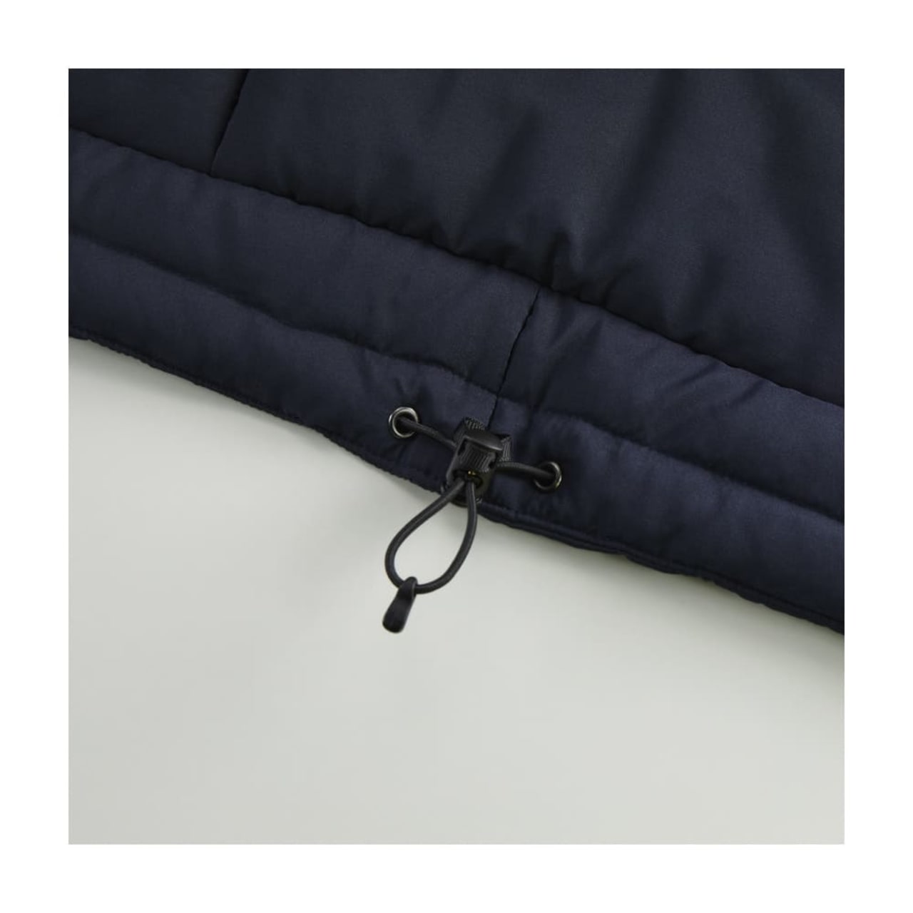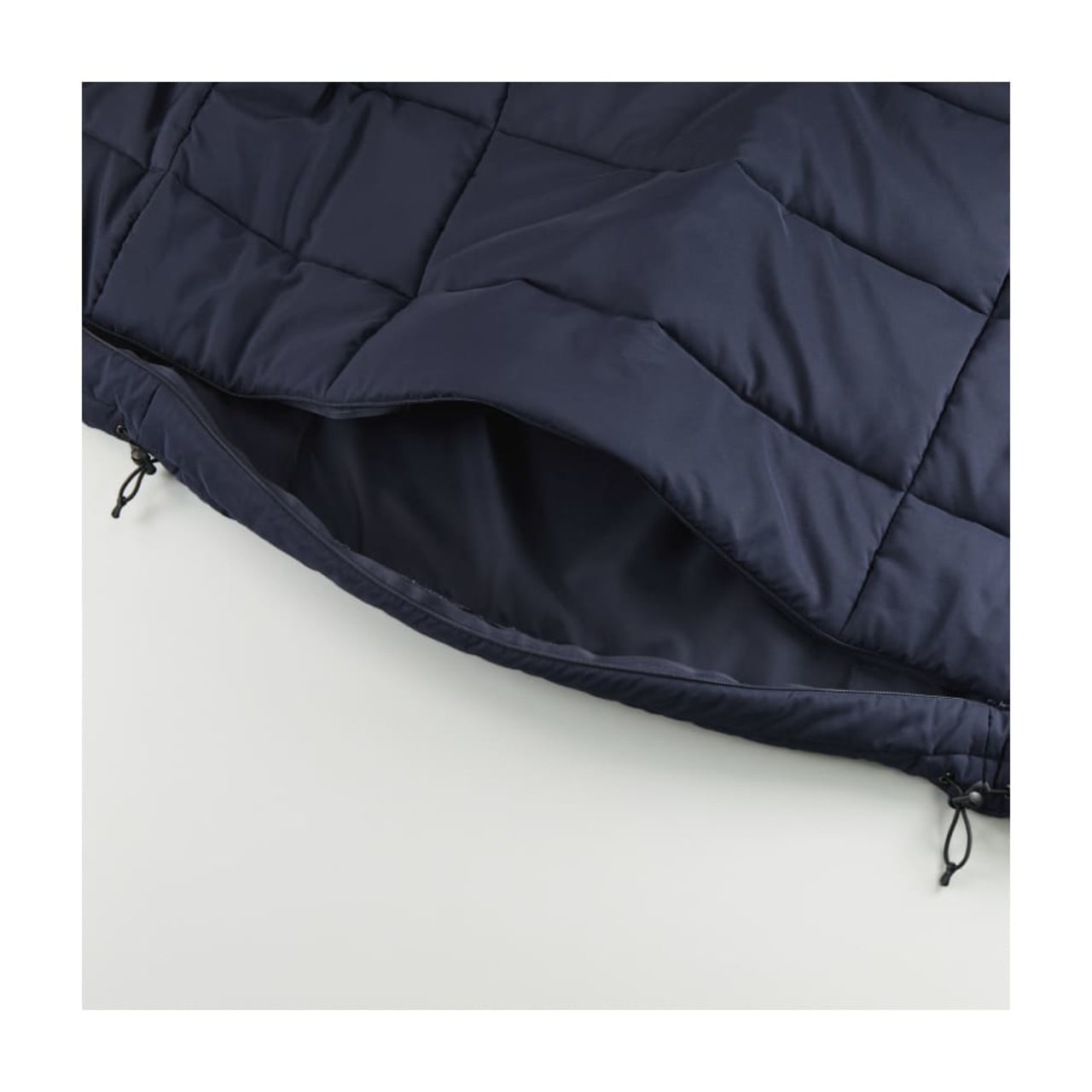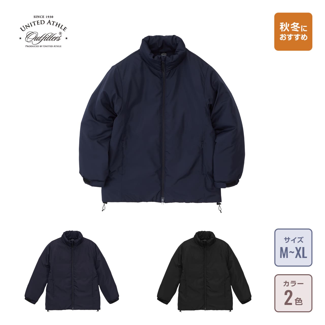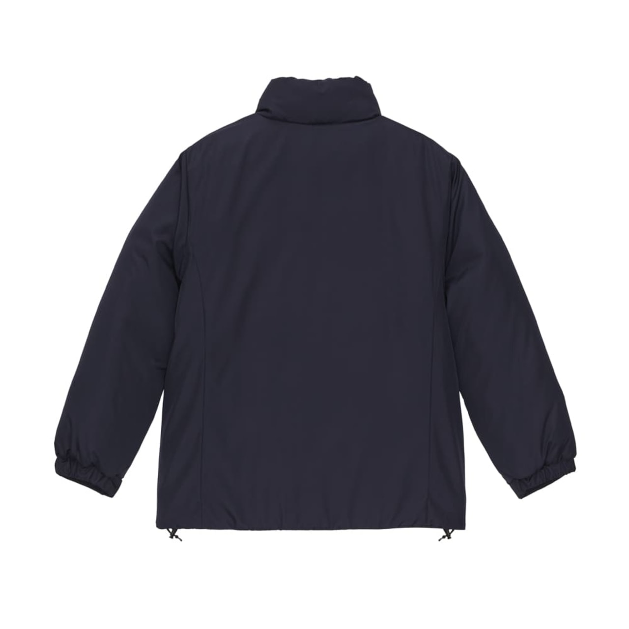 スタンドネック仕様で首元まで暖かい中綿ジャケット。シームレスなデザインがすっきりとした印象を与え、スマートな着こなしが可能です。インナーにフーディを合わせればレイヤードも楽しめ、シンプルながら幅広いコーディネートに対応。裏地はキルティング仕様で保温性が高く、冬場のユニフォームやイベントスタッフ用アウターとして活躍します。
