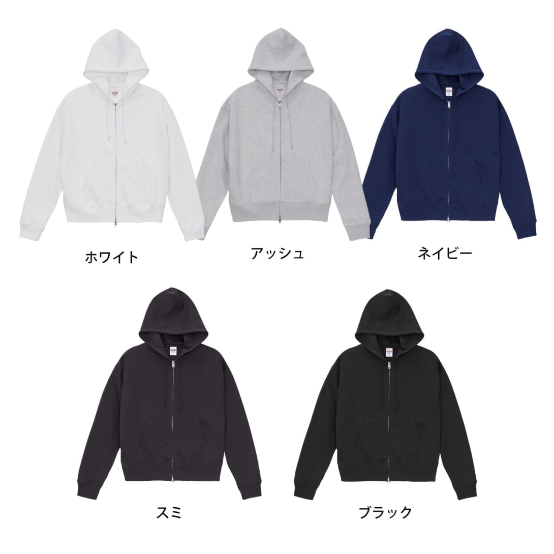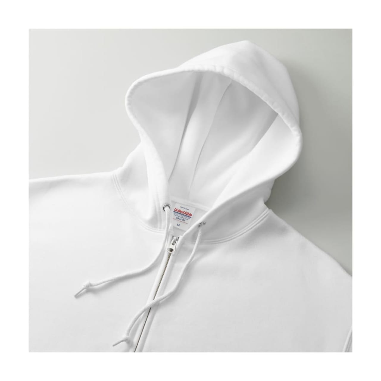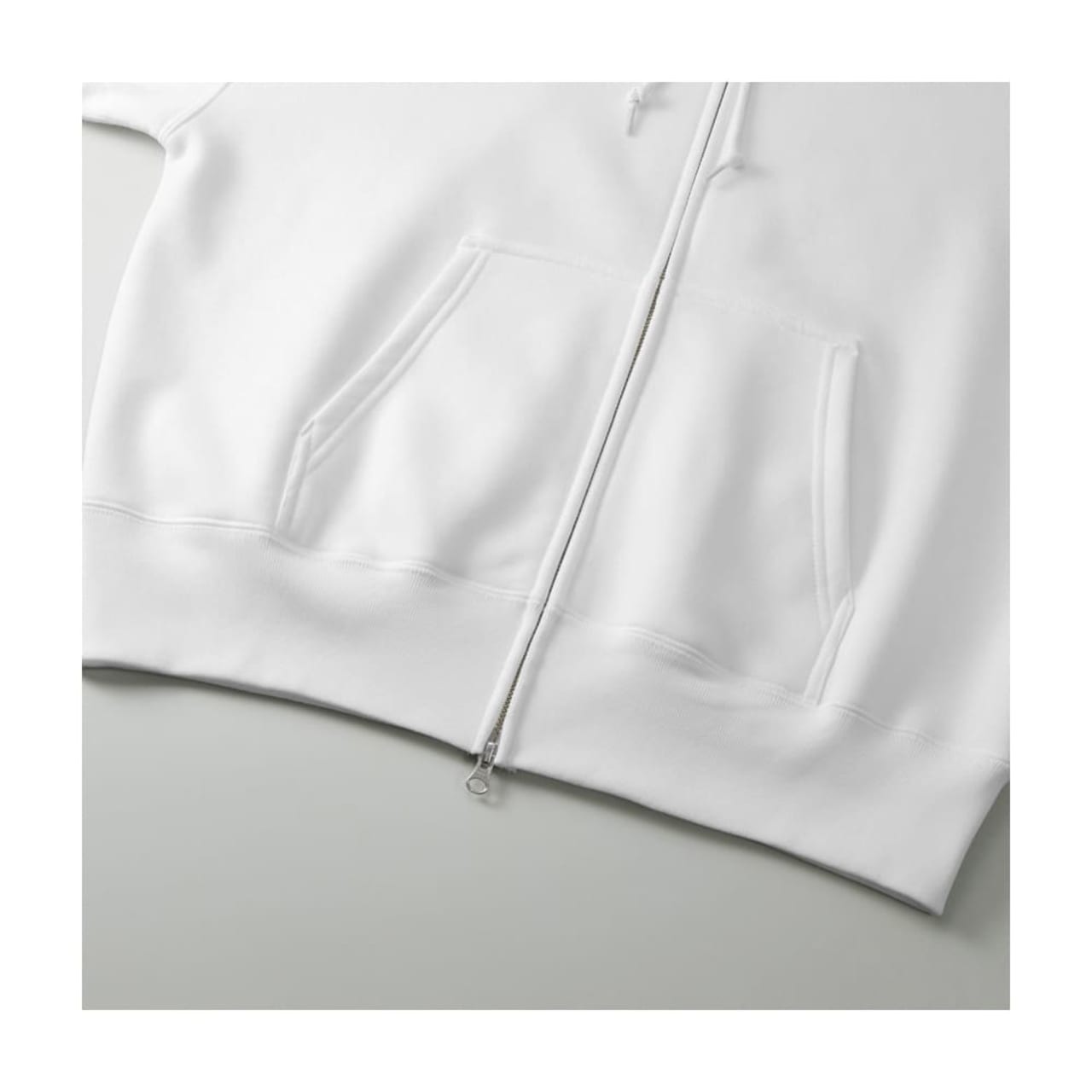 素材は綿52%・ポリエステル48%の裏起毛スウェットを採用。保温性に優れ、冬場でも快適な着用感をキープします。フロントはYKK製ダブルスライダーファスナーでスムーズな開閉が可能。フード先端はセミダブルステッチ仕様で丈夫に仕上げられています。切れるネーム仕様のため、刺繍やプリントなどのカスタム加工にも対応しやすく、法人ユニフォームやイベント用アウターとしても最適な機能を備えています。