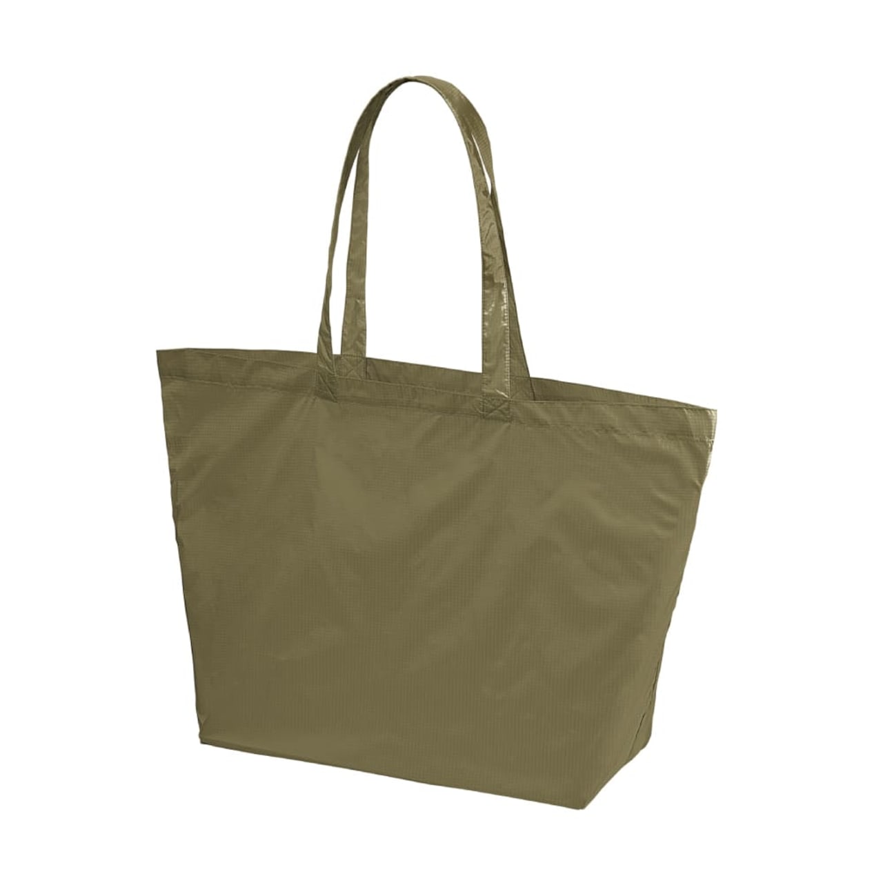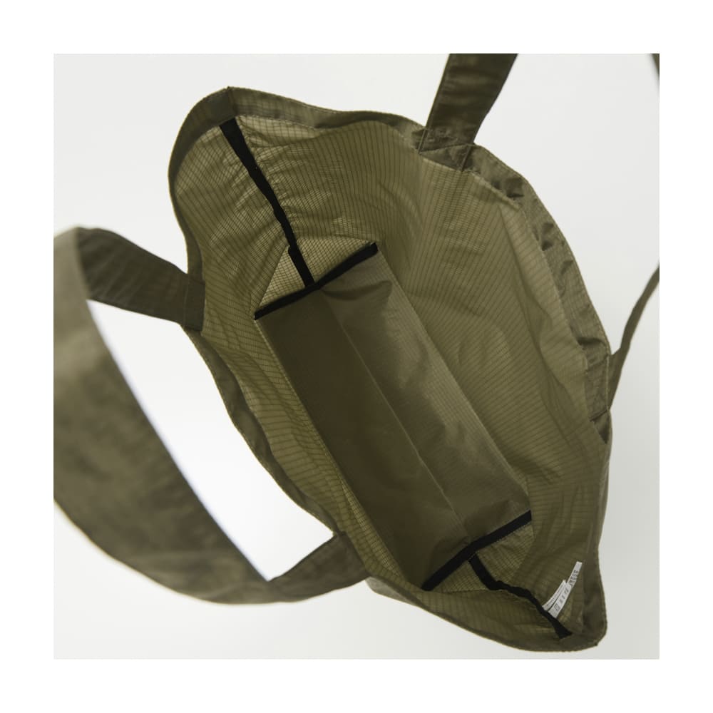 素材は軽量で耐久性の高いナイロン100%リップストップ生地を採用。繊維を格子状に織り込み、裂けや破れを防ぐ構造です。アクリルコーティング加工により、耐摩耗性と耐久性が向上。用途に応じた2サイズ展開。ハンドルは肩掛けにも対応できる長さで、使い勝手抜群です。
