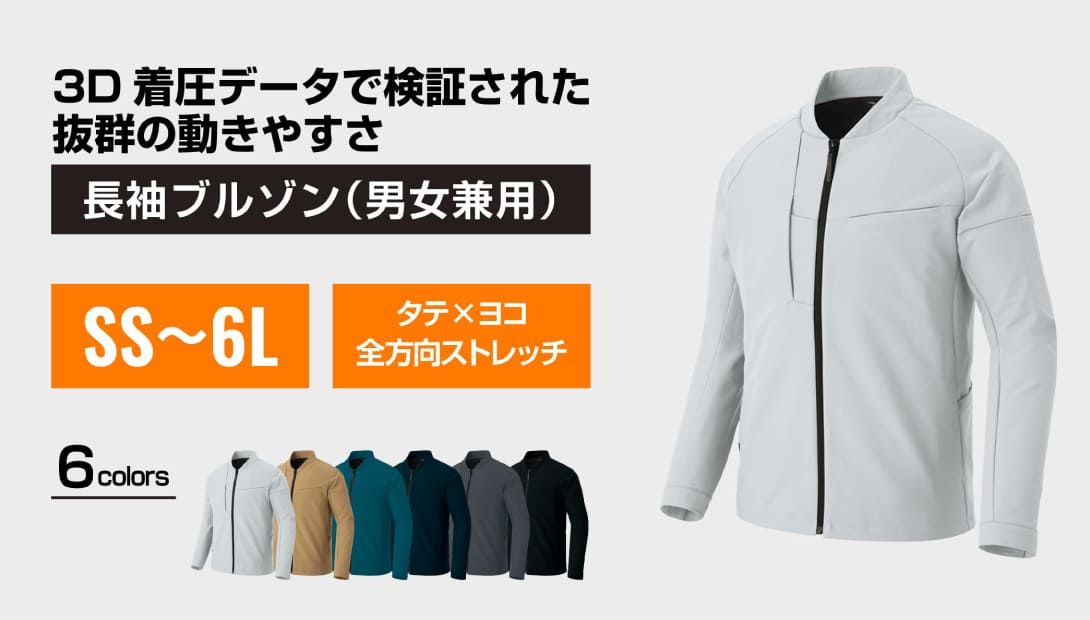 このブルゾンは、どんな職種にも合わせやすい万能タイプ。縦横全方向のストレッチ性があるので、立ち作業・座り作業・運搬作業など動きの多い業務にもぴったりです。軽くて柔らかく、一日中着ても疲れにくいのが特徴ですね。帯電防止機能があるので、乾燥した季節や電気機器を扱う現場でも安心。シンプルで落ち着いたデザインなので、刺繍やプリントで企業カラーを加えれば、統一感あるユニフォームに仕上がります。