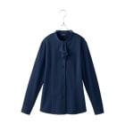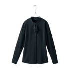 フリルがあるだけで華やかさが増し、お客様対応時の印象◎。ストレッチ性が高く、動きやすさも十分。ネイビーは柔らかく女性らしい雰囲気、ブラックはフォーマル感がしっかり出ます。アイロン不要で準備も簡単なので、忙しい現場でも重宝します。