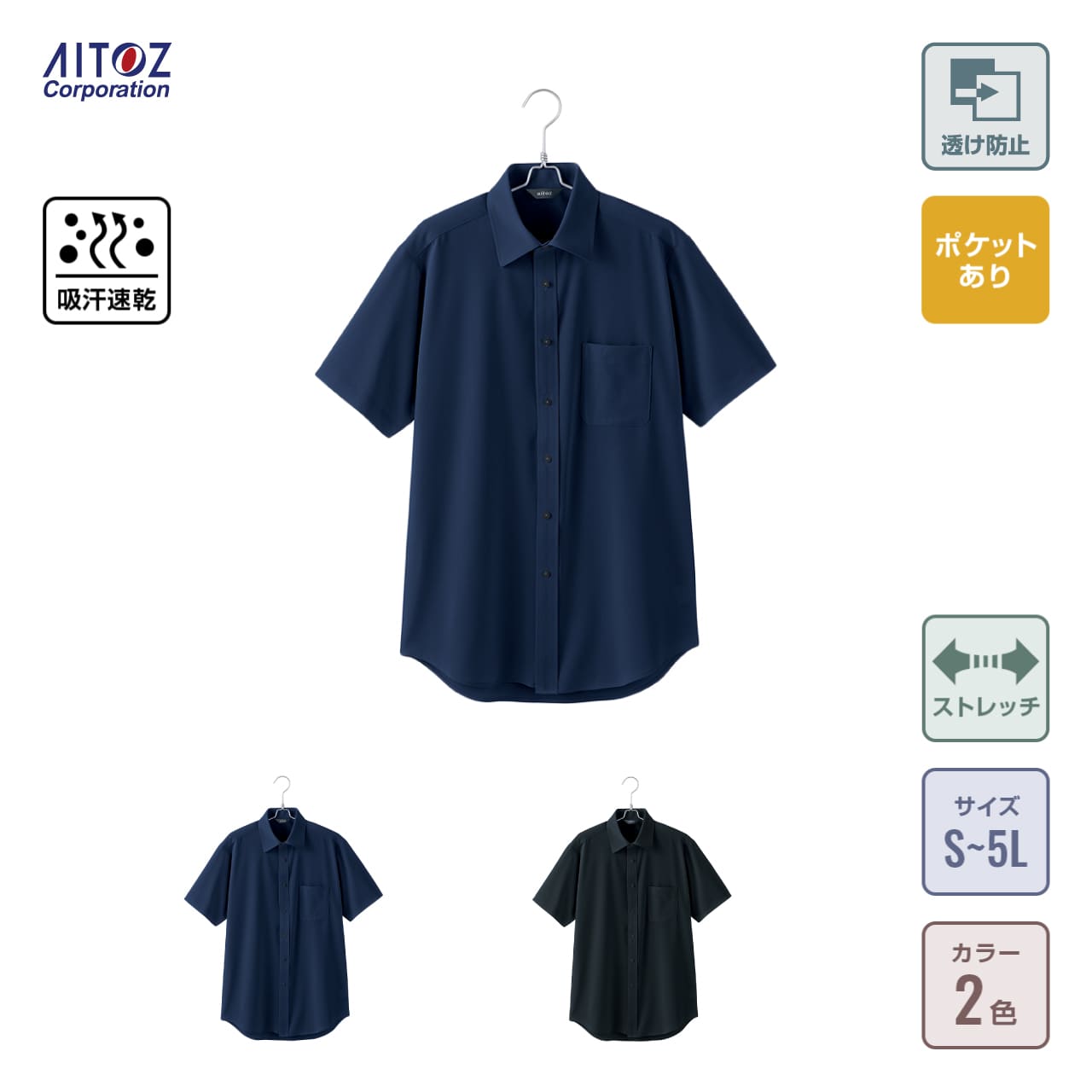 夏のユニフォームに最適な半袖仕様。形態安定加工でシワになりにくく、アイロンいらず。ストレッチ性で動きやすく、吸水速乾で汗をかいてもすぐ乾きます。防汚加工により清潔感を保ち、接客や営業などお客様と接する場面でも好印象を与えます。