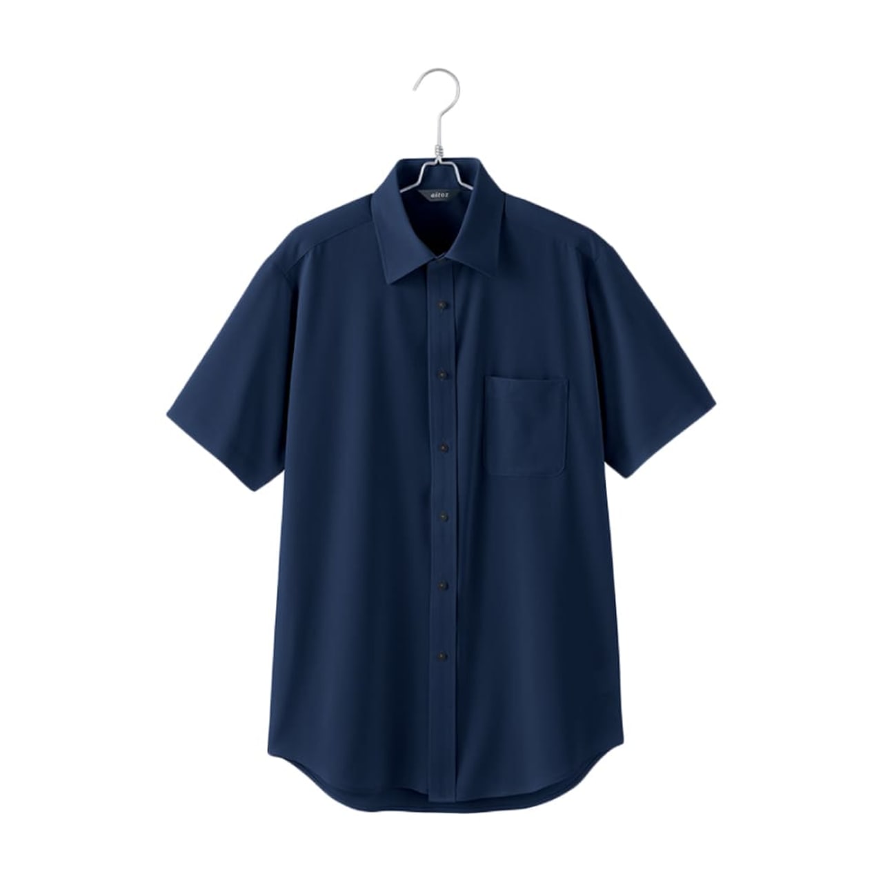 夏場でもサラッと快適に着られる半袖シャツです。ブラックは落ち着いた印象、ネイビーは爽やかさを演出。ノーアイロンで手入れも簡単なので、出勤前の準備時間が短縮できます。