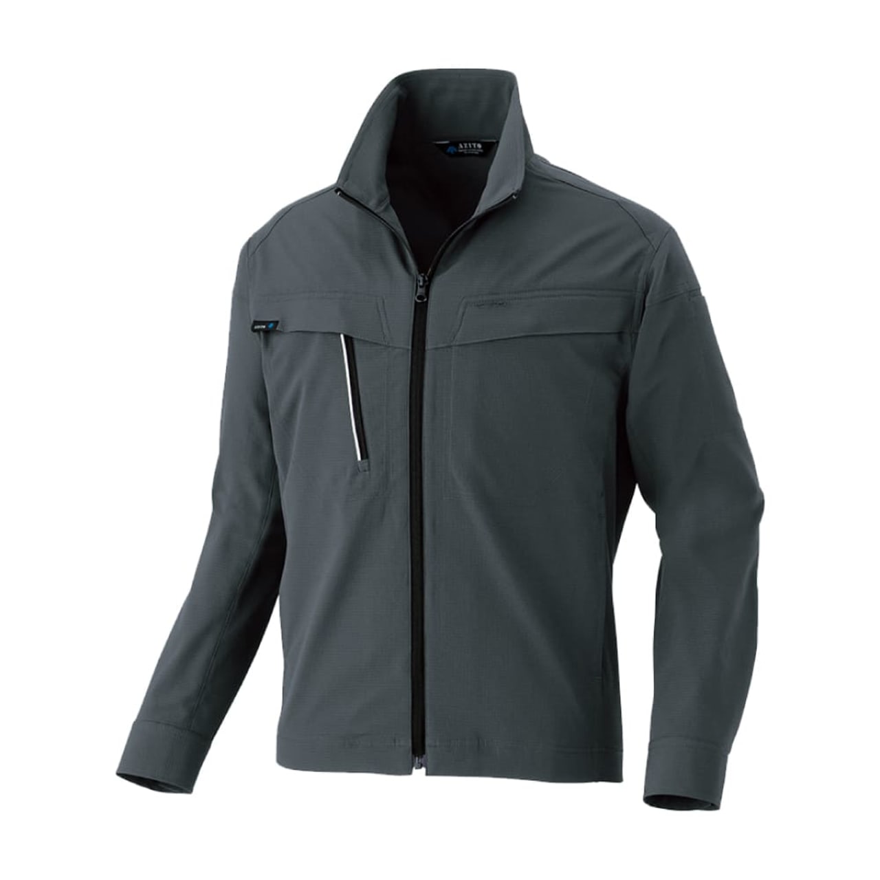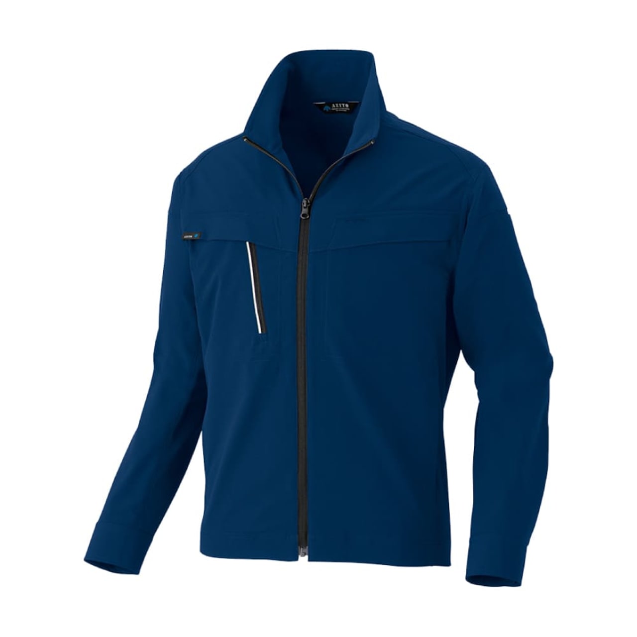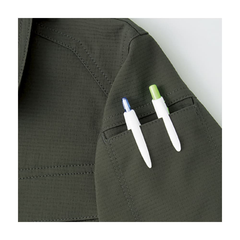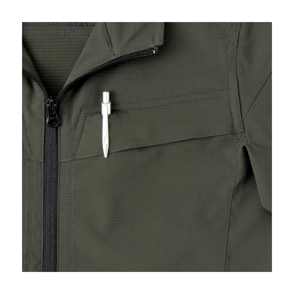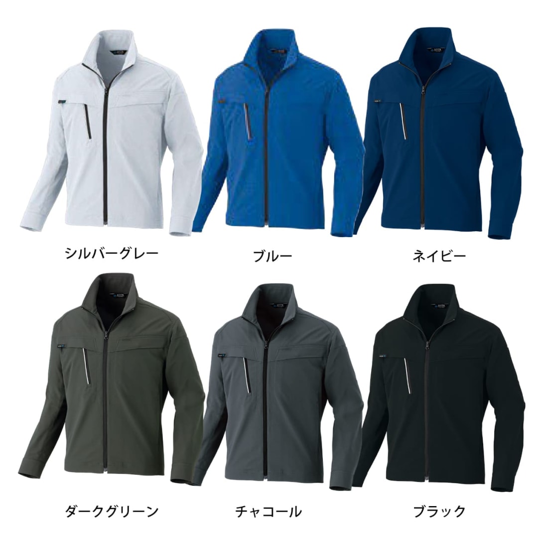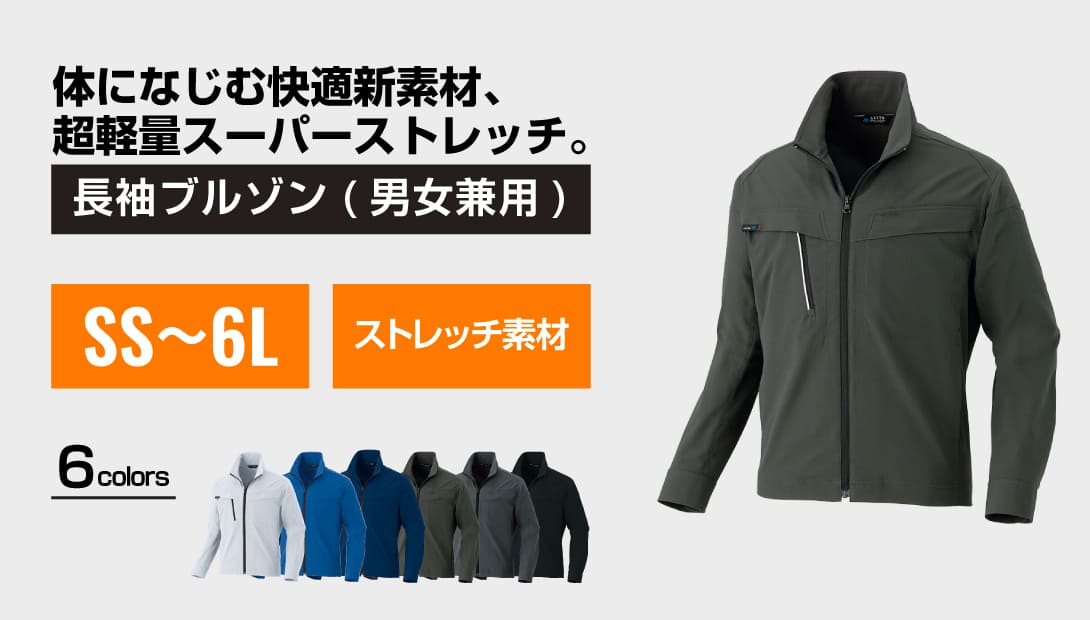 スーパーストレッチ素材が全方向に伸び、体の動きにフィットしながら負担を軽減。軽量設計で長時間の着用も快適です。JIS規格 T8118適合の安全性を備え、作業現場でも安心。胸ポケットにはペン差し、腰ポケットには収納性を高める工夫が施され、小物管理がしやすい構造。SS〜6Lまでの幅広いサイズと5色展開で、多様な職種や現場のニーズに対応します。