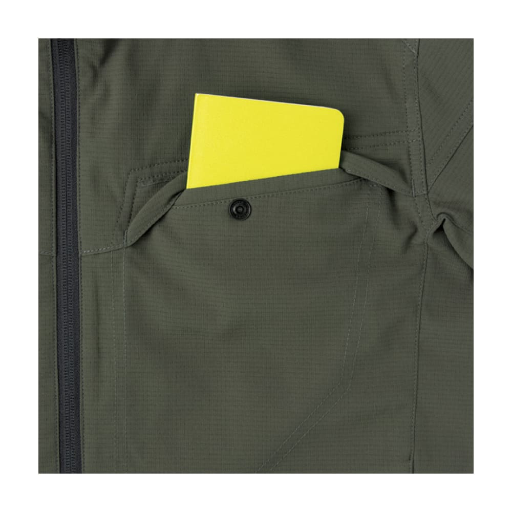 とにかく軽くて動きやすいのが第一印象。腕を上げても突っ張らないので、荷物の積み下ろしや高所作業もラクにできます。ストレッチが効いているのに型崩れしにくく、見た目もスマート。ポケットの配置が絶妙で、よく使う道具やメモ帳をサッと取り出せるのが助かります。カラーバリエーションも豊富で、チームカラーや用途に合わせやすいのもポイントです。