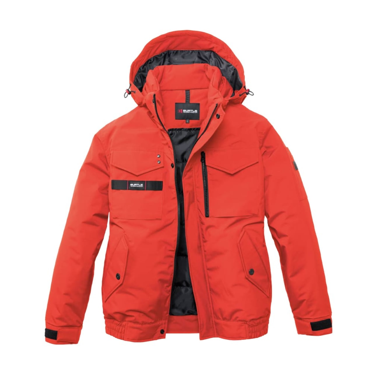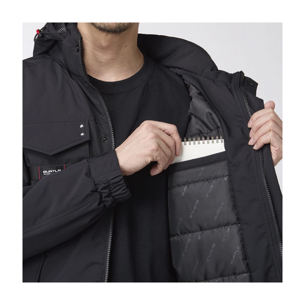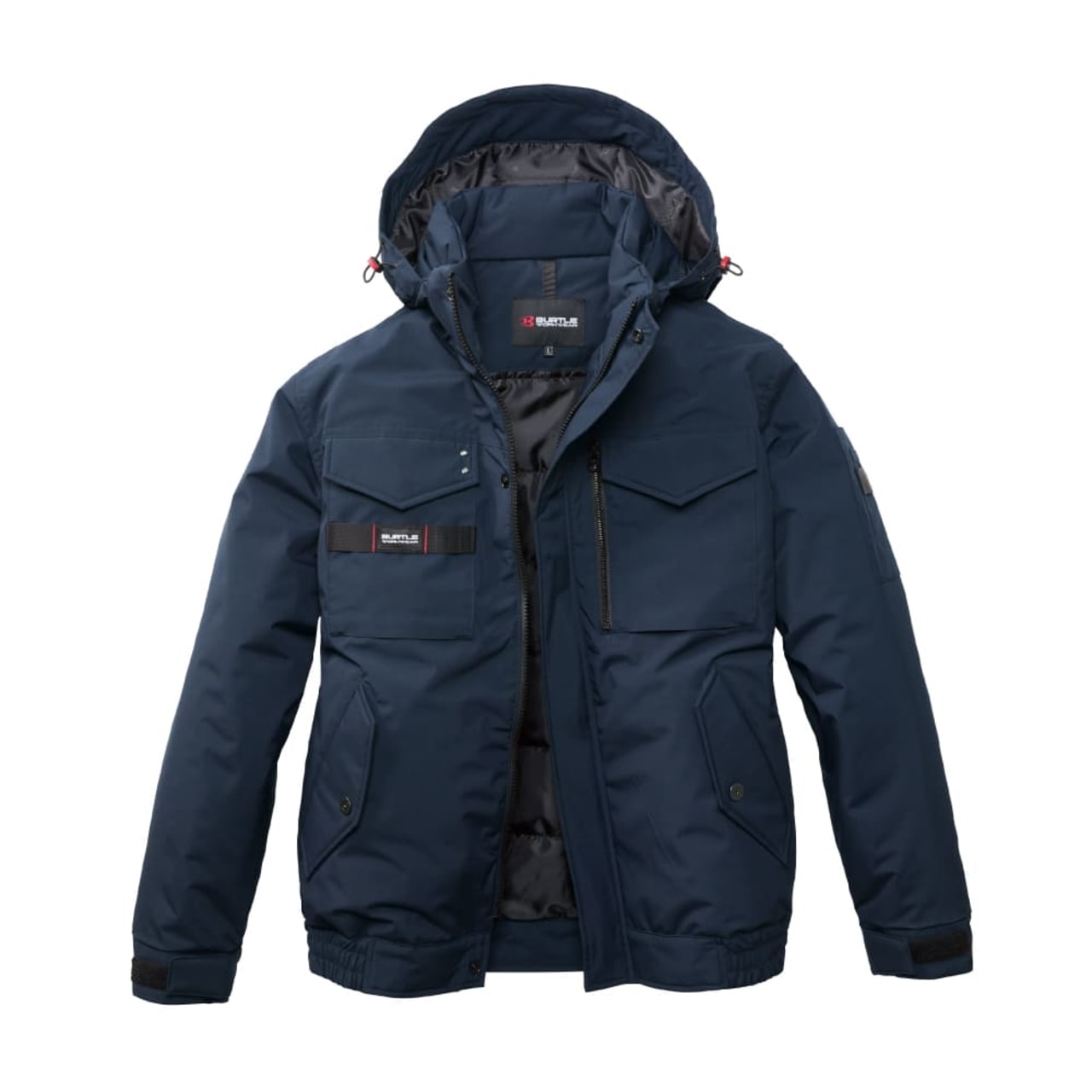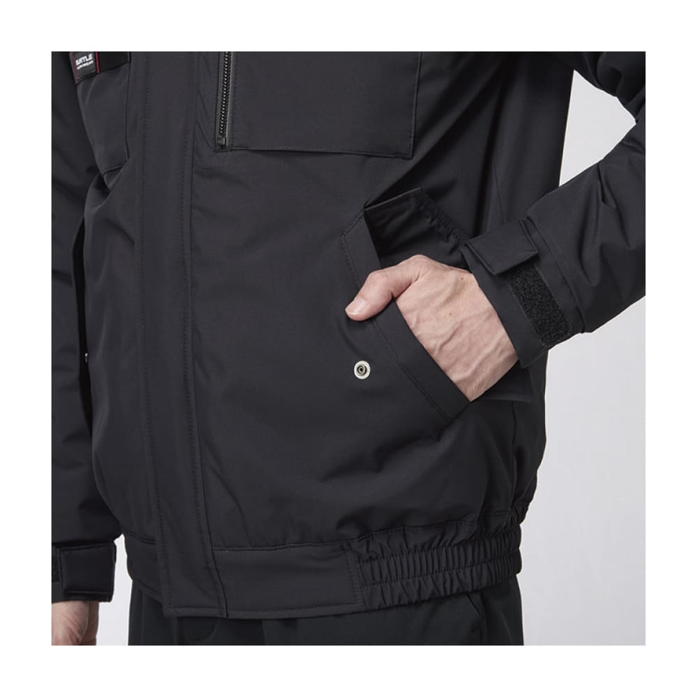 防水ラミネート加工を施したマイクロソフトシェル素材を採用し、耐水圧10,000mmの高い防水性を実現。軽量で動きやすく、裏地の中綿でしっかり保温します。胸や袖に配置された多機能ポケットは収納性に優れ、作業やイベント時にも便利。シンプルかつミリタリーテイストなデザインは刺繍やプリントも映え、法人ユニフォームとして活躍します。