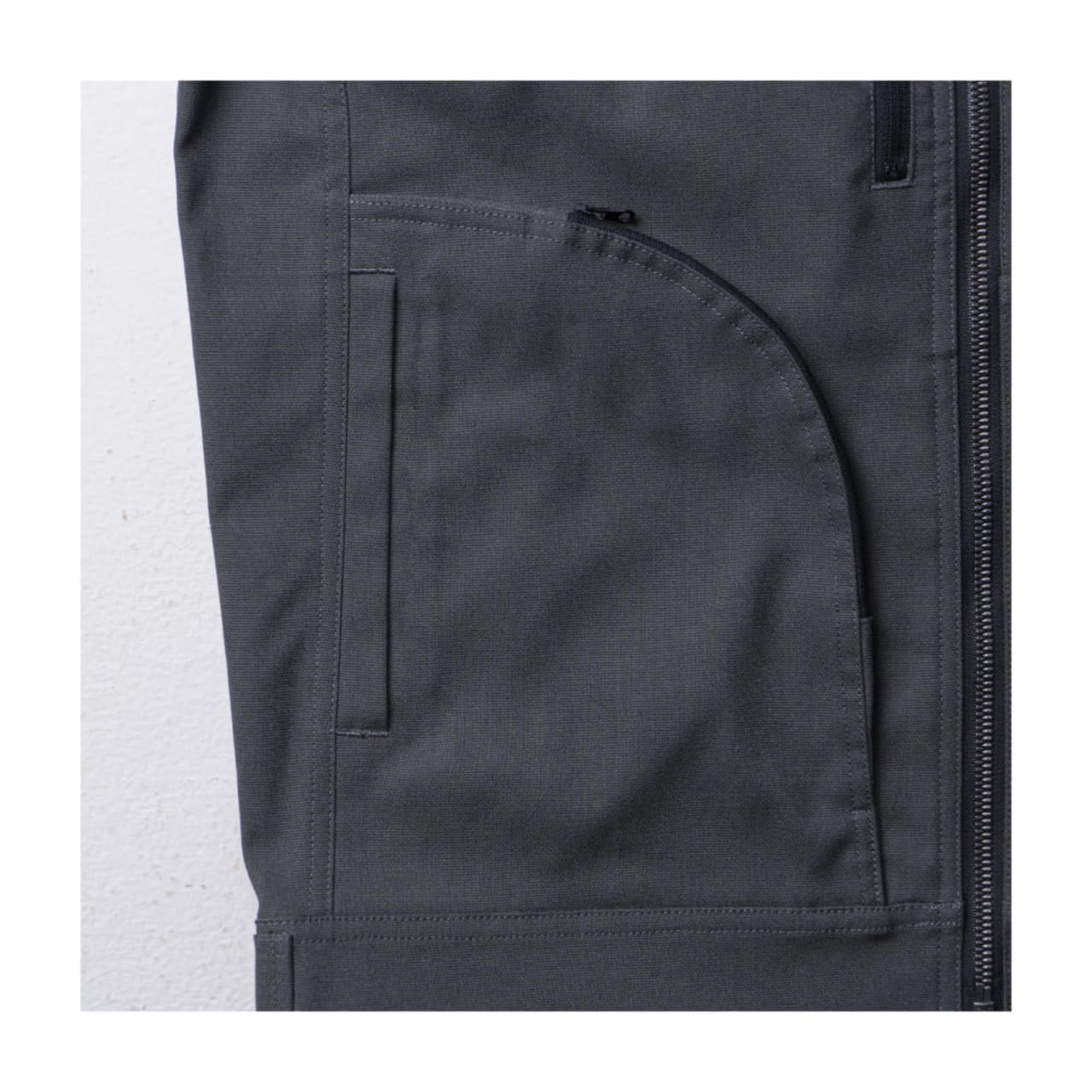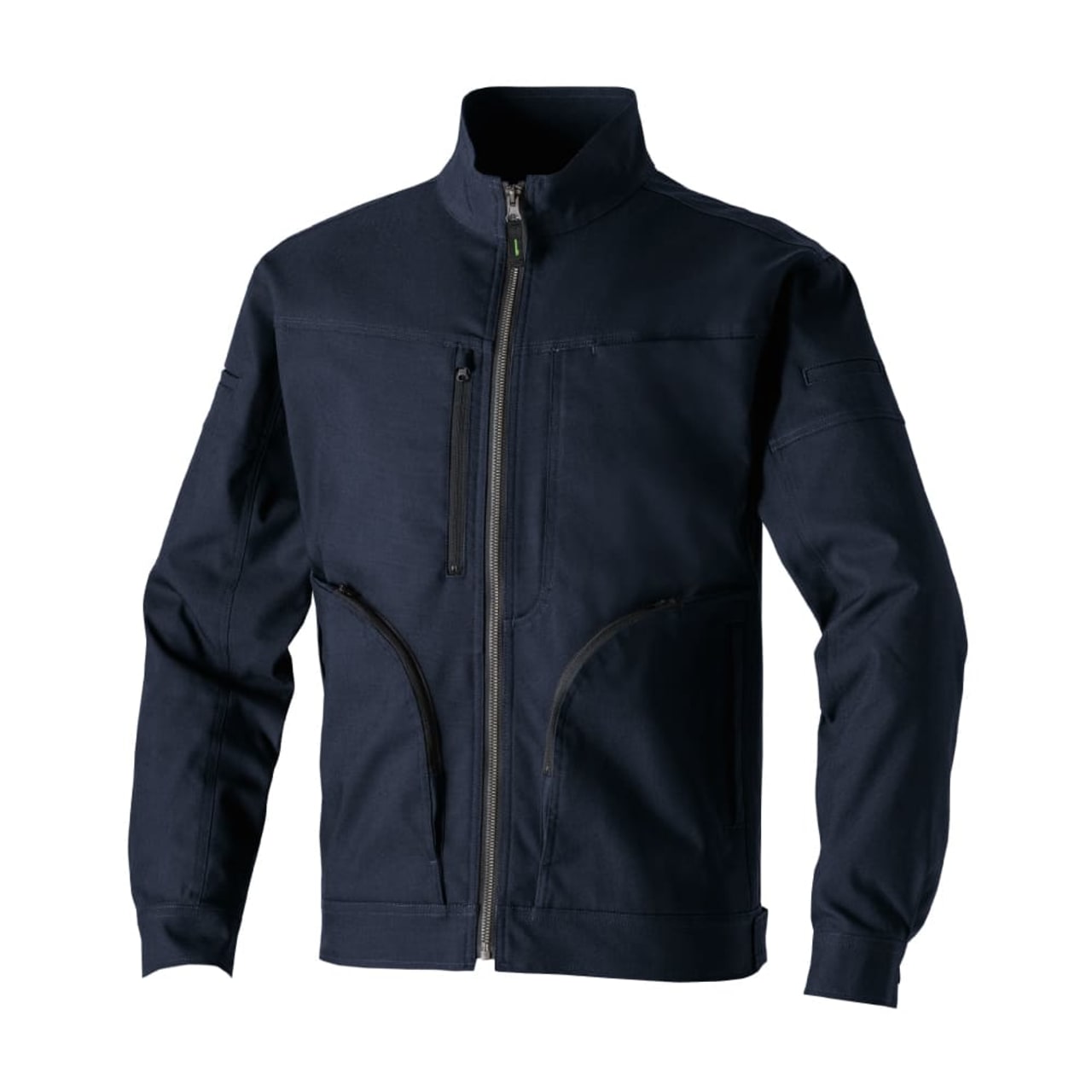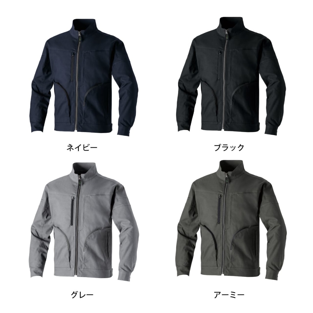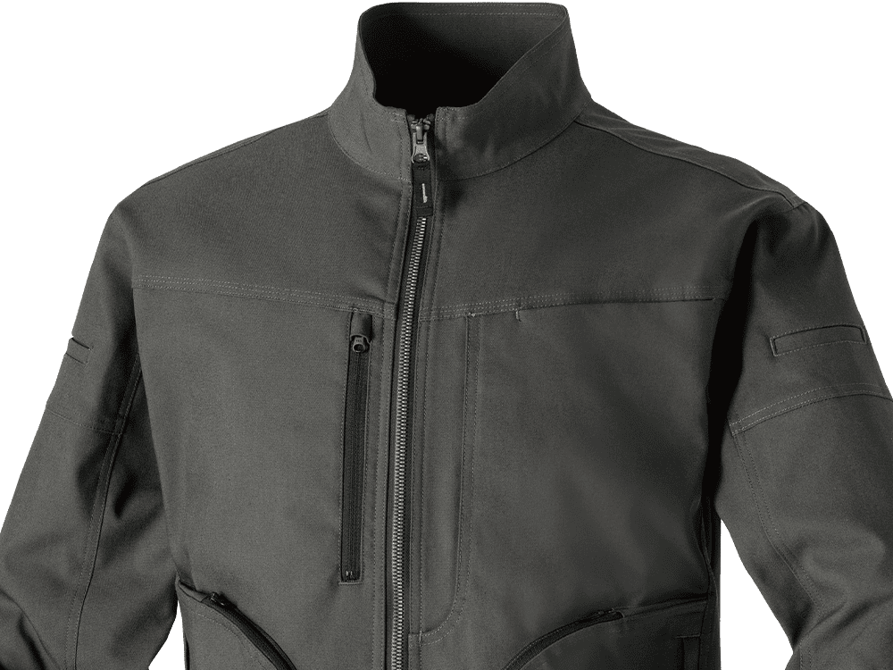 素材はポリエステル80%・綿20%。「ECOPET®」繊維を使用し、環境配慮と機能性を両立。ストレッチ性、制電性、防臭性に優れ、快適な作業をサポートします。ノーフォーク仕様で肩回りの動作性を高め、反射パイピングで視認性を向上。胸や脇には複数のポケットを備え、収納性にも優れています。サイズはSS〜8Lの展開。