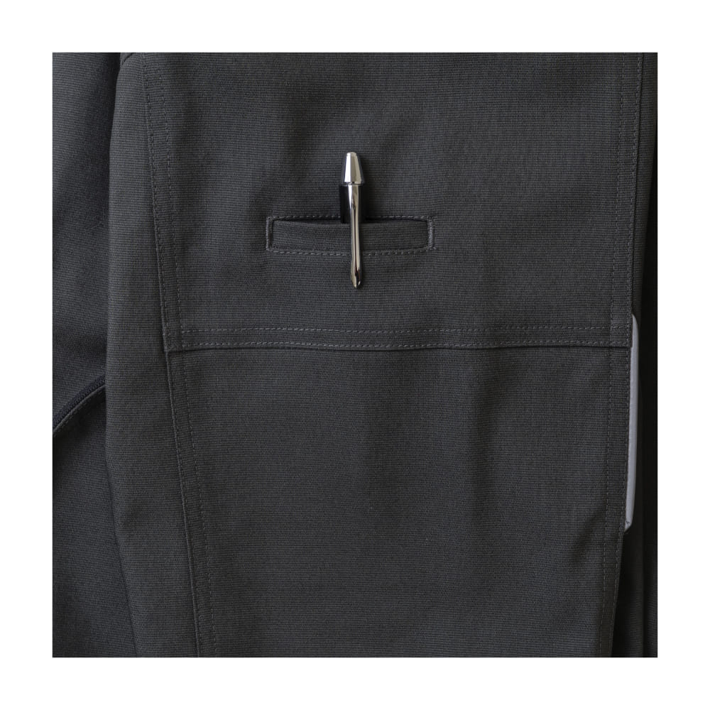 実際に羽織るとストレッチがしっかり効いていて動きやすく、作業中のストレスを感じませんでした。防臭機能や制電性能が備わっているので快適に過ごせ、反射パイピングが暗い場所でも安心感を与えてくれます。シンプルでありながら機能的なので、企業ロゴを入れてユニフォームにすれば信頼感を高められる一着になると思います。