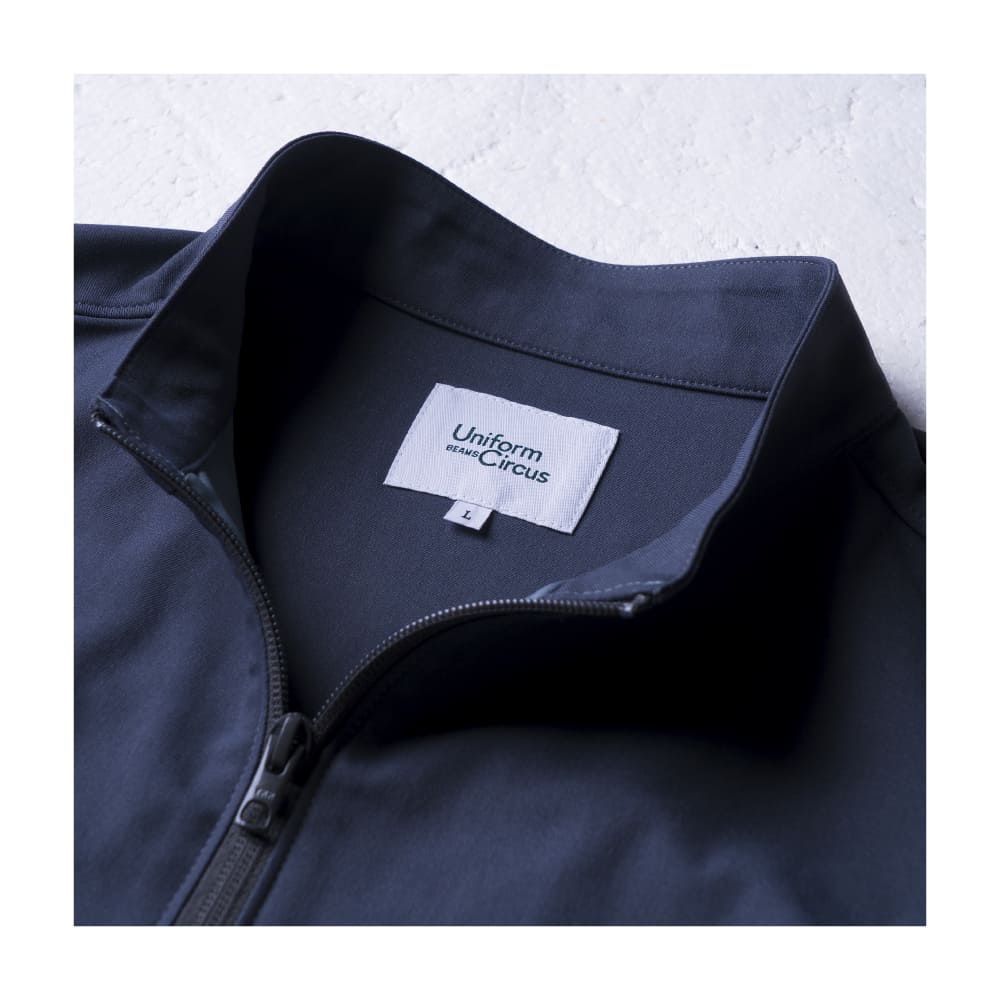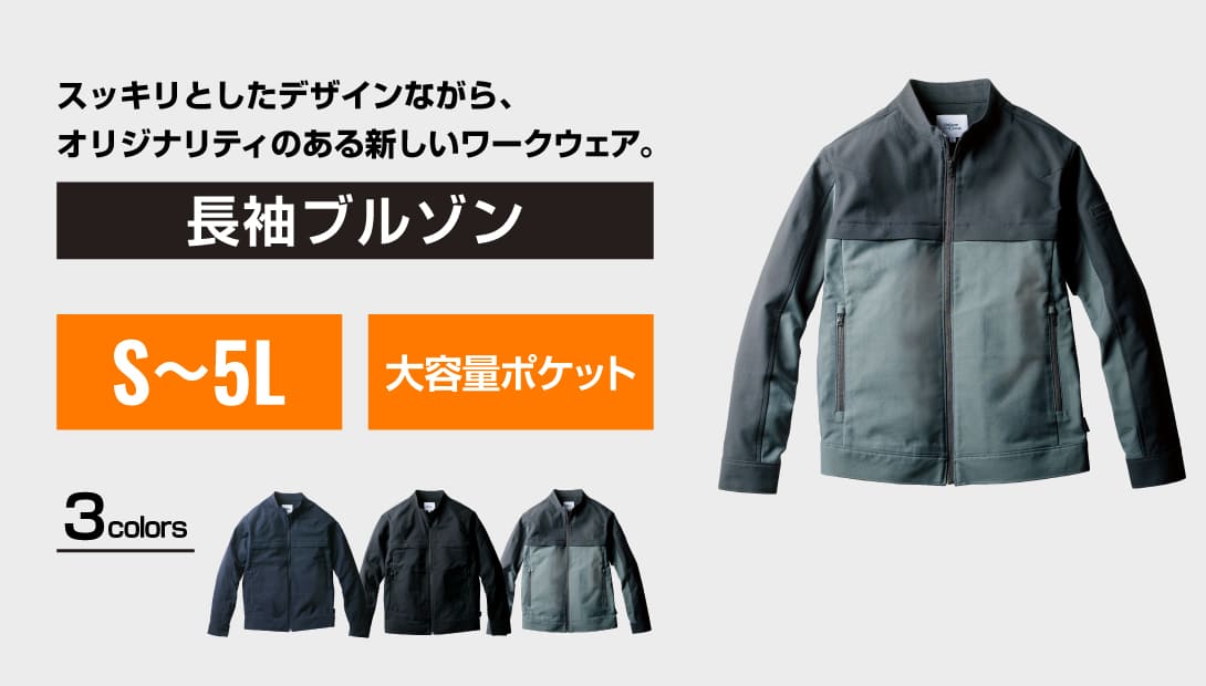 素材はポリエステル100%を使用し、軽量で丈夫。両胸に隠しドットボタン付きフラップポケット、袖ポケット、両脇ファスナーポケットを装備し、収納力を強化。袖口にはブランドロゴ入りのスナップボタンを採用。シンプルながら高い機能性を備えたブルゾンで、サイズはS〜5Lまで展開しています。