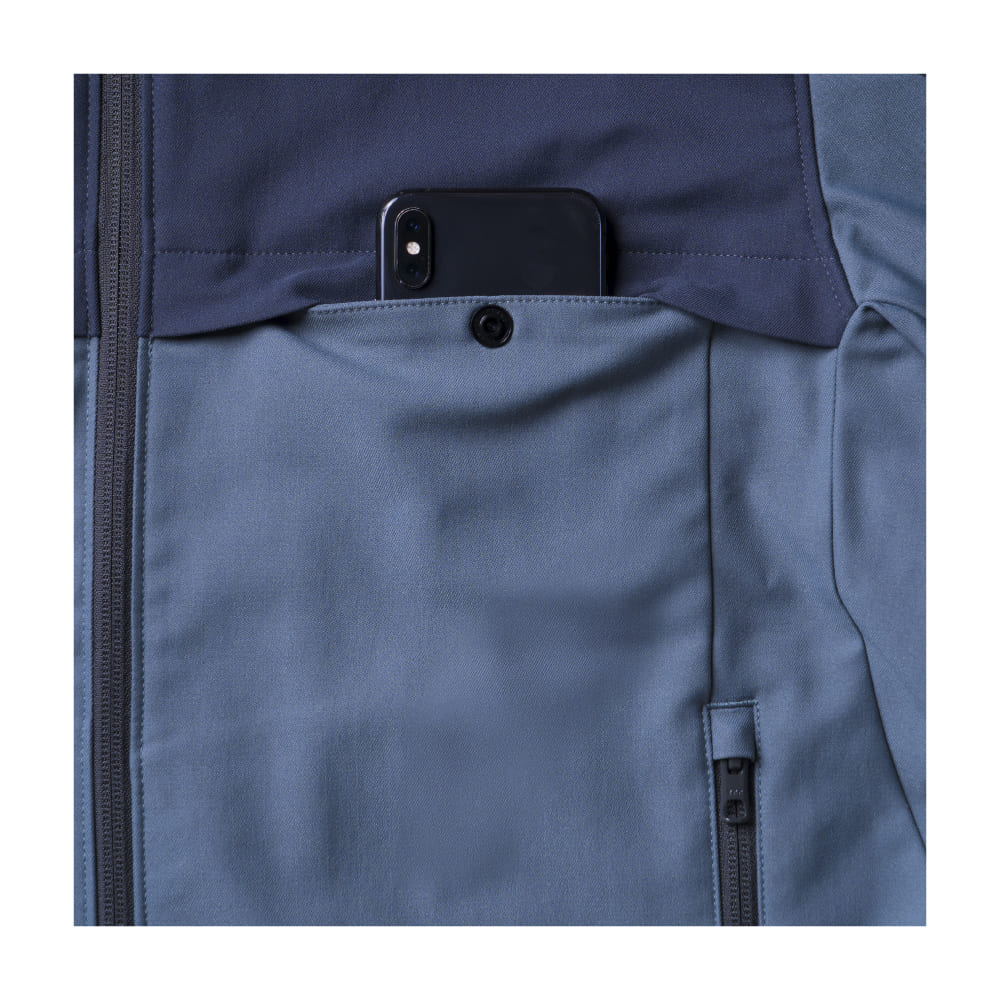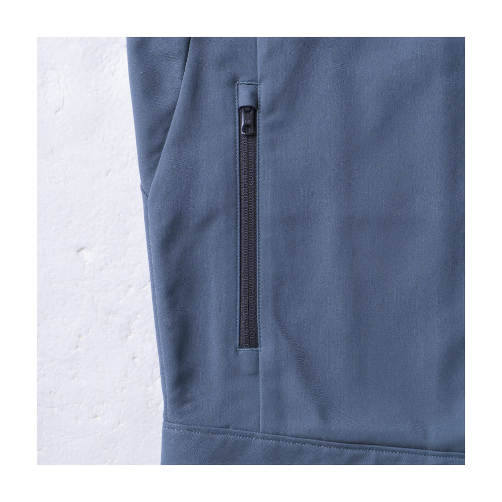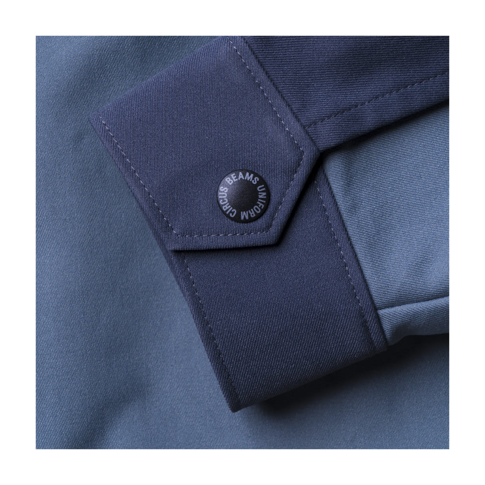 胸ポケットには隠しドットボタンを採用し、スマートでシンプルな見た目を実現。袖ポケットやファスナーポケットを搭載し、実用性にも配慮しています。袖口にはロゴ入りスナップボタンを採用し、細部までデザイン性を高めた仕様。シンプルながらも機能性をしっかり備えているため、法人ユニフォームやイベント用スタッフウェアに最適です。