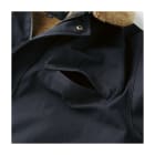 表地には耐久性の高い綿100%キャンバス生地を使用。裏地と襟元にはボアを備え、防寒性を確保しています。襟ボアは取り外し可能で、着用シーンに合わせてアレンジ可能。袖口や裾はリブ仕様で冷気の侵入を防ぎ、快適さを維持します。シンプルながら存在感のあるデザインは、法人ユニフォームやイベント用ウェアとしても適した仕様です。