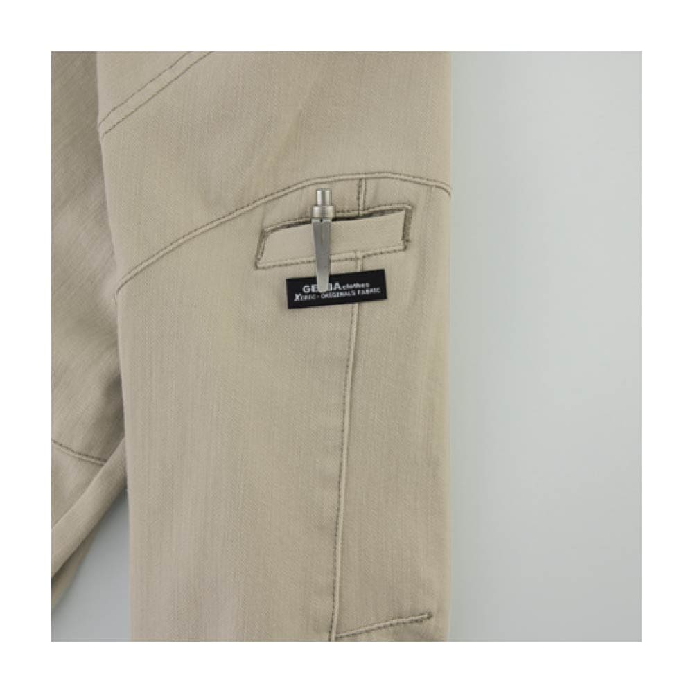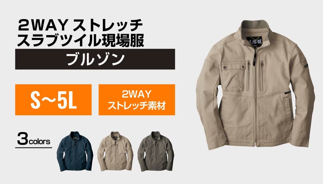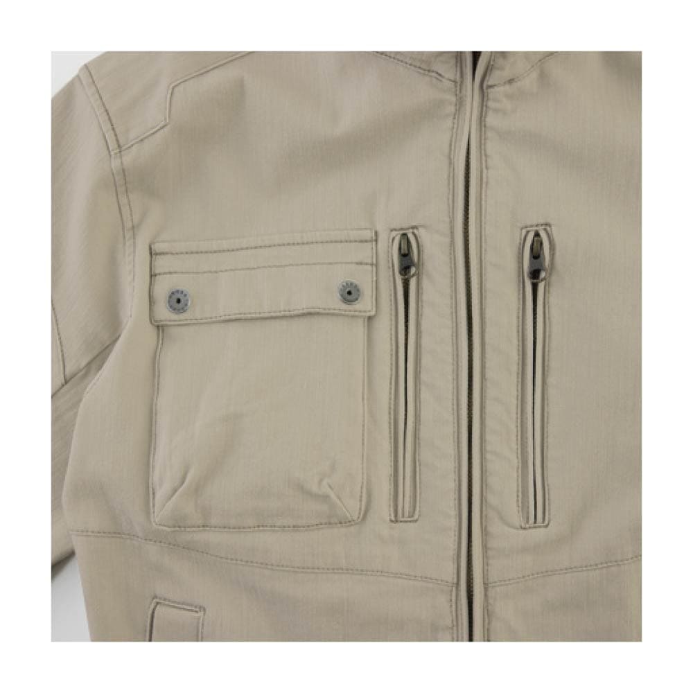 ポリエステル95%・ポリウレタン5%の2WAYストレッチスラブツイル素材を使用。タテヨコに伸縮するため動作がスムーズで、快適な着心地をサポートします。両胸にファスナーポケットを配置し、土やホコリの侵入を防止。耐久性の高い生地は長時間の使用にも適しており、法人ユニフォームやイベント用ウェアに最適です。シンプルなデザインで刺繍やプリント加工も可能。サイズはS〜5Lまで展開し、幅広い体型に対応します。