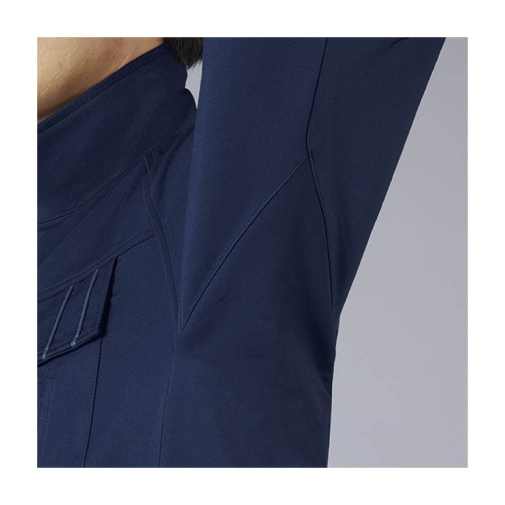 素材はポリエステル80%、綿20%。制電性を備えており、静電気の発生を抑制します。さらにストレッチ性が高く、動きやすさと快適さを両立。軽量ながら耐久性があり、幅広い作業環境に対応します。刺繍やプリント加工との相性も良いため、法人ユニフォームやイベント用ウェアとして導入しやすい商品です。