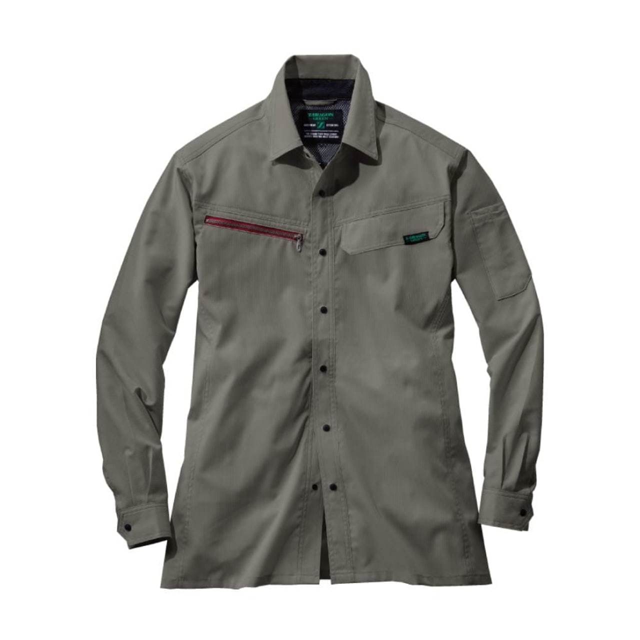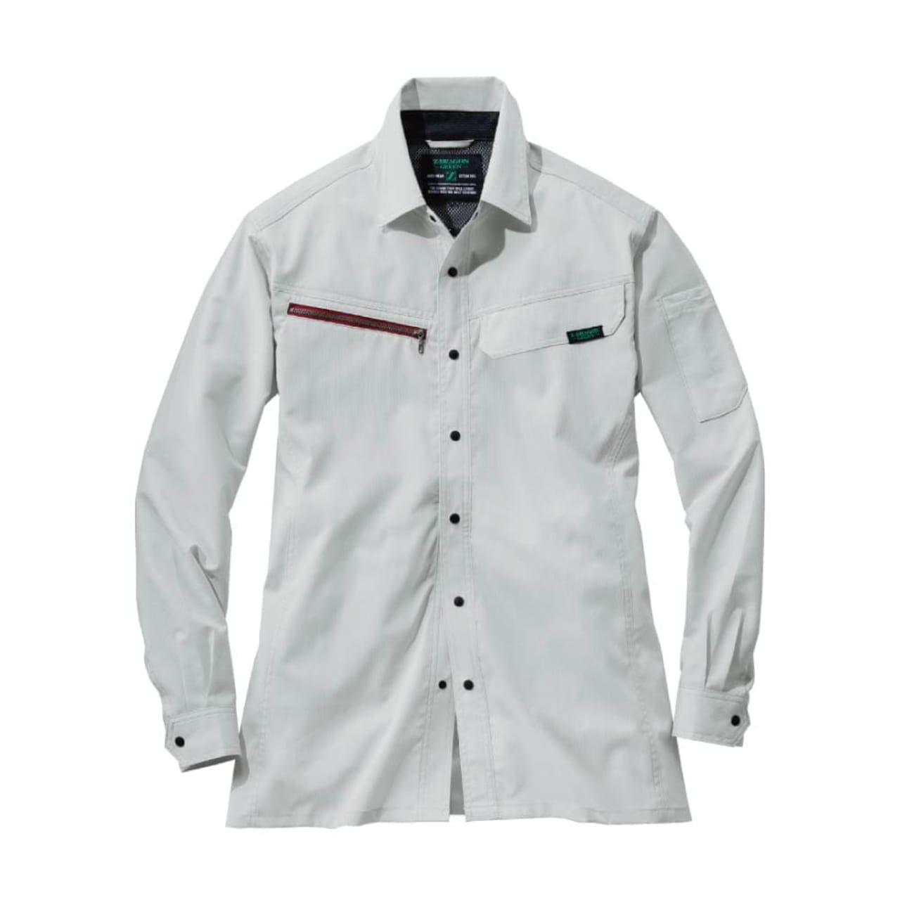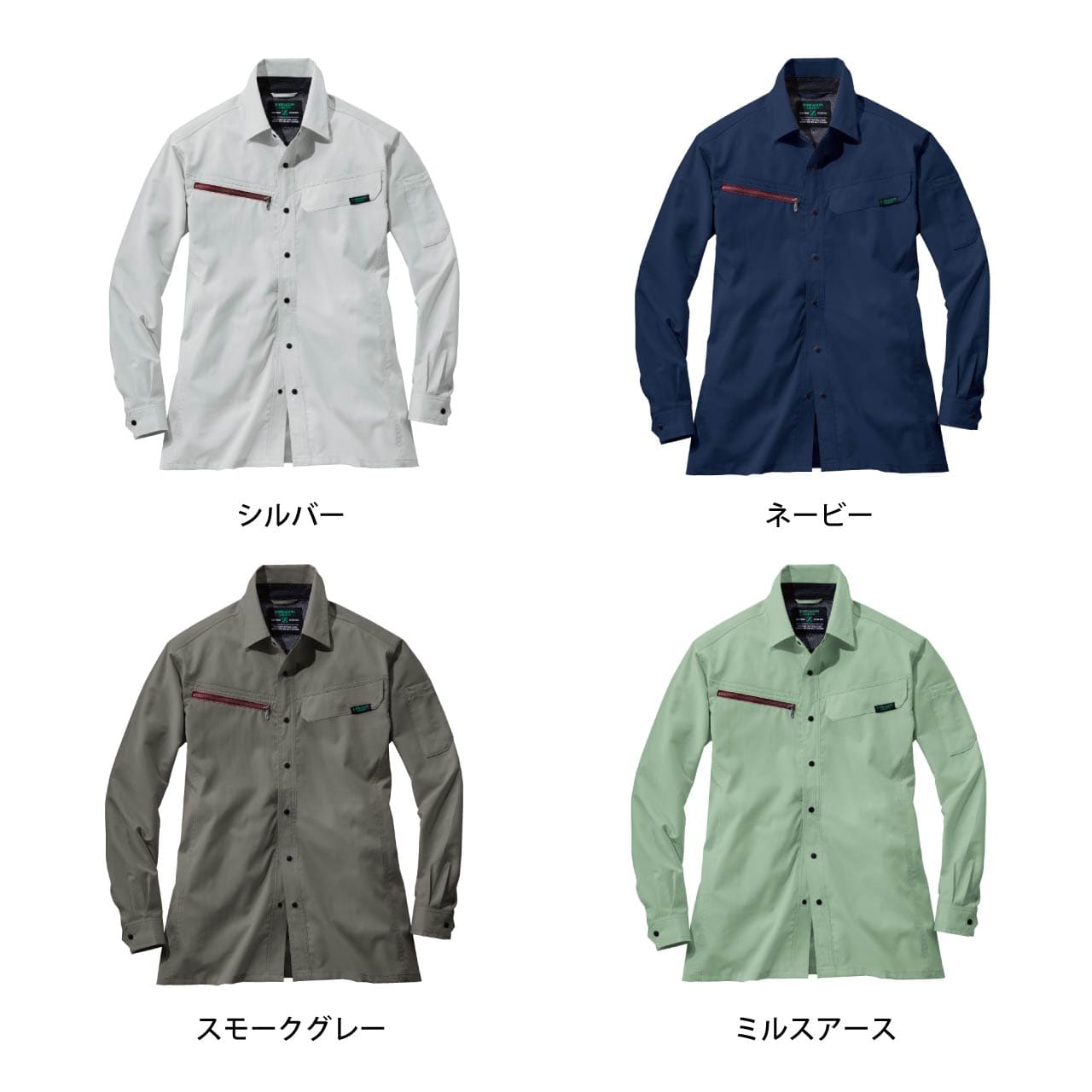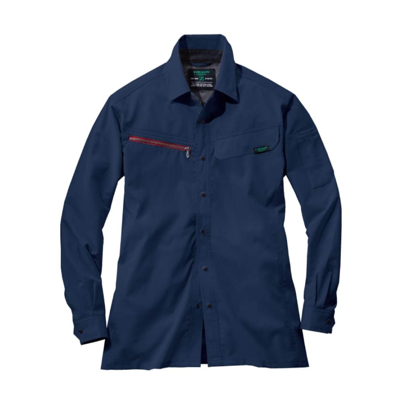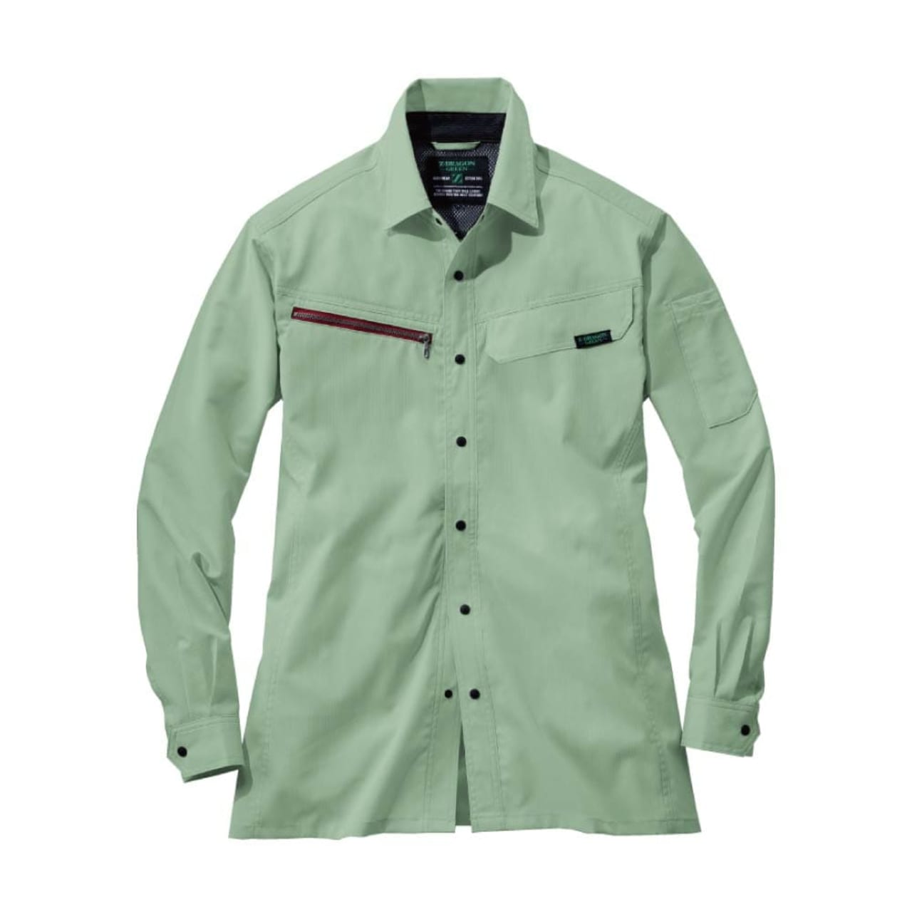 環境に優しい植物由来合成繊維を使用した長袖シャツ。制電仕様で静電気の発生を抑え、ストレッチ性で動きやすさをサポートします。シンプルで清潔感あるデザインは刺繍やプリントを施すことで映え、ユニフォームに最適。環境配慮と実用性を兼ね備えた一着です。