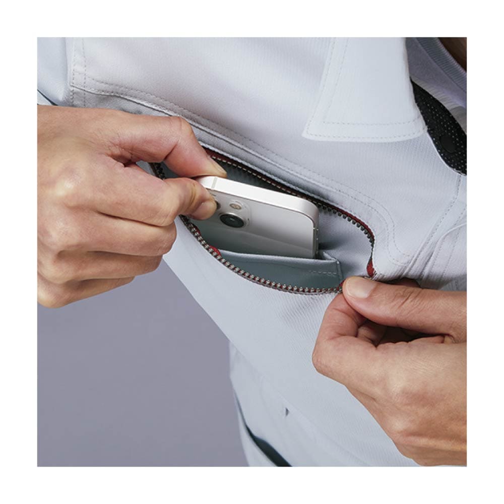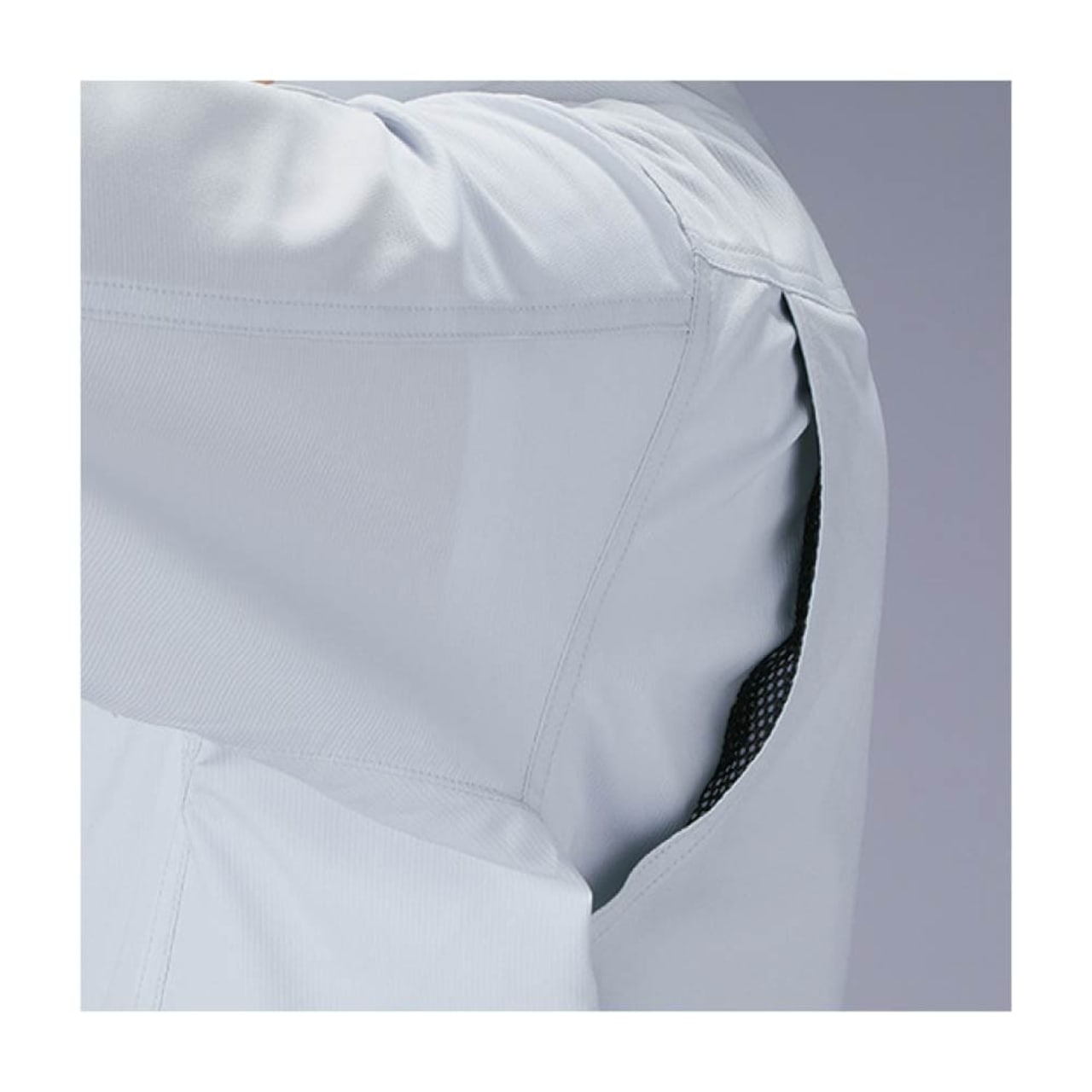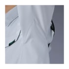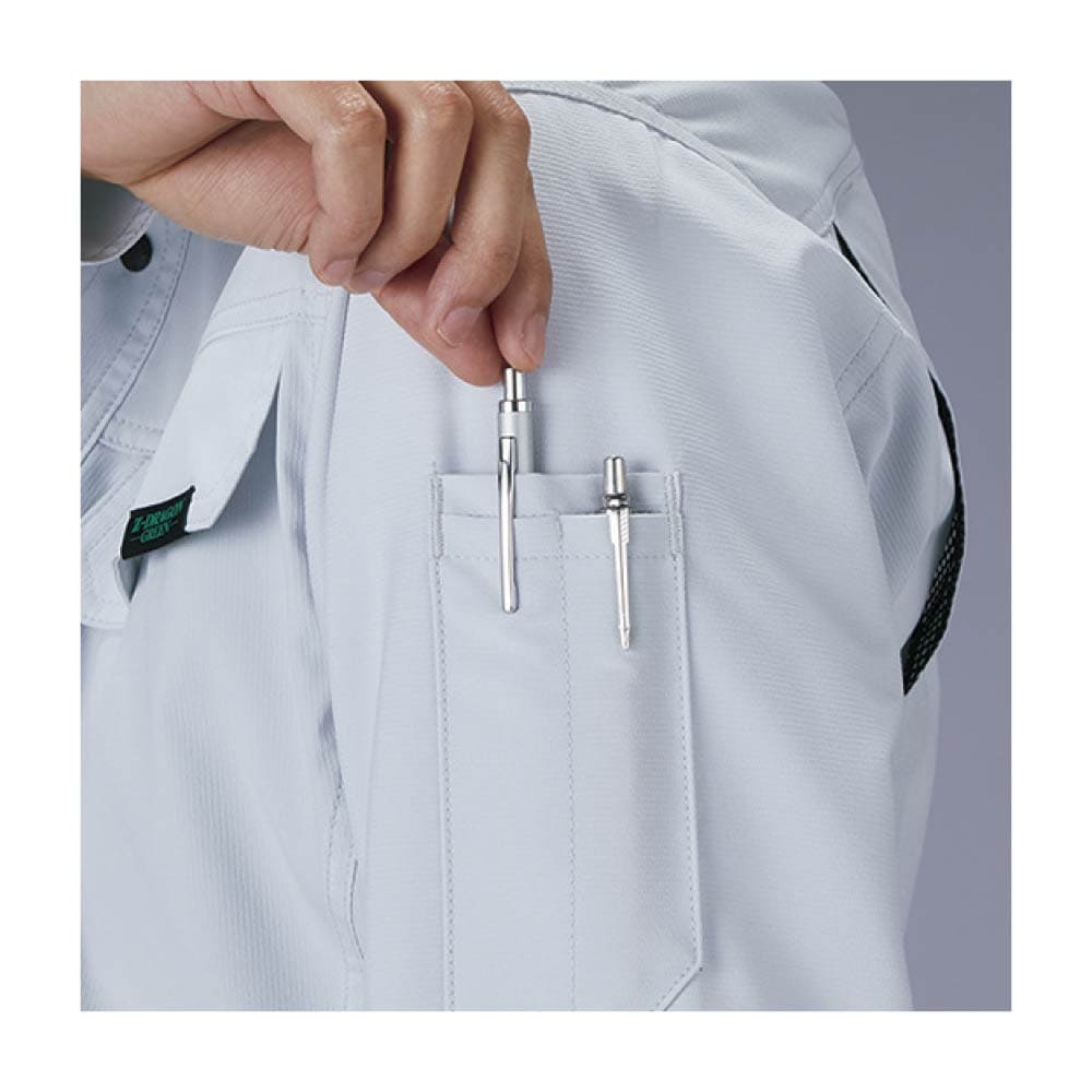 植物由来合成繊維を50%以上使用した「エコディア®PET」繊維を採用。ストレッチ性で動きやすく、制電性で安心して作業可能。胸ポケットを備え、シンプルながらも機能性を確保。刺繍やプリントが映える設計で、環境配慮とデザイン性を両立しています。