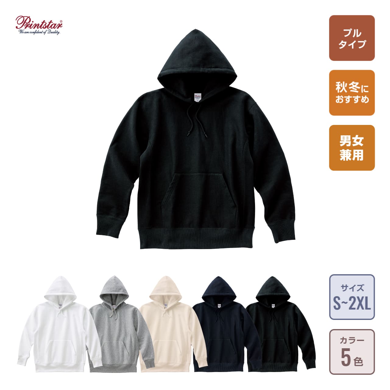 12.0オンスのヘビーウェイト生地を使用した、ボリューム感のある裏起毛パーカー。内側は保温性の高い裏起毛仕様で、肌寒い季節も快適に過ごせます。シンプルなデザインに大きめのカンガルーポケットとフードがアクセント。厚手の素材でプリントや刺繍もきれいに仕上がり、オリジナルウェアのベースとしても人気です。日常使いからイベント、チームユニフォームまで幅広く対応します。