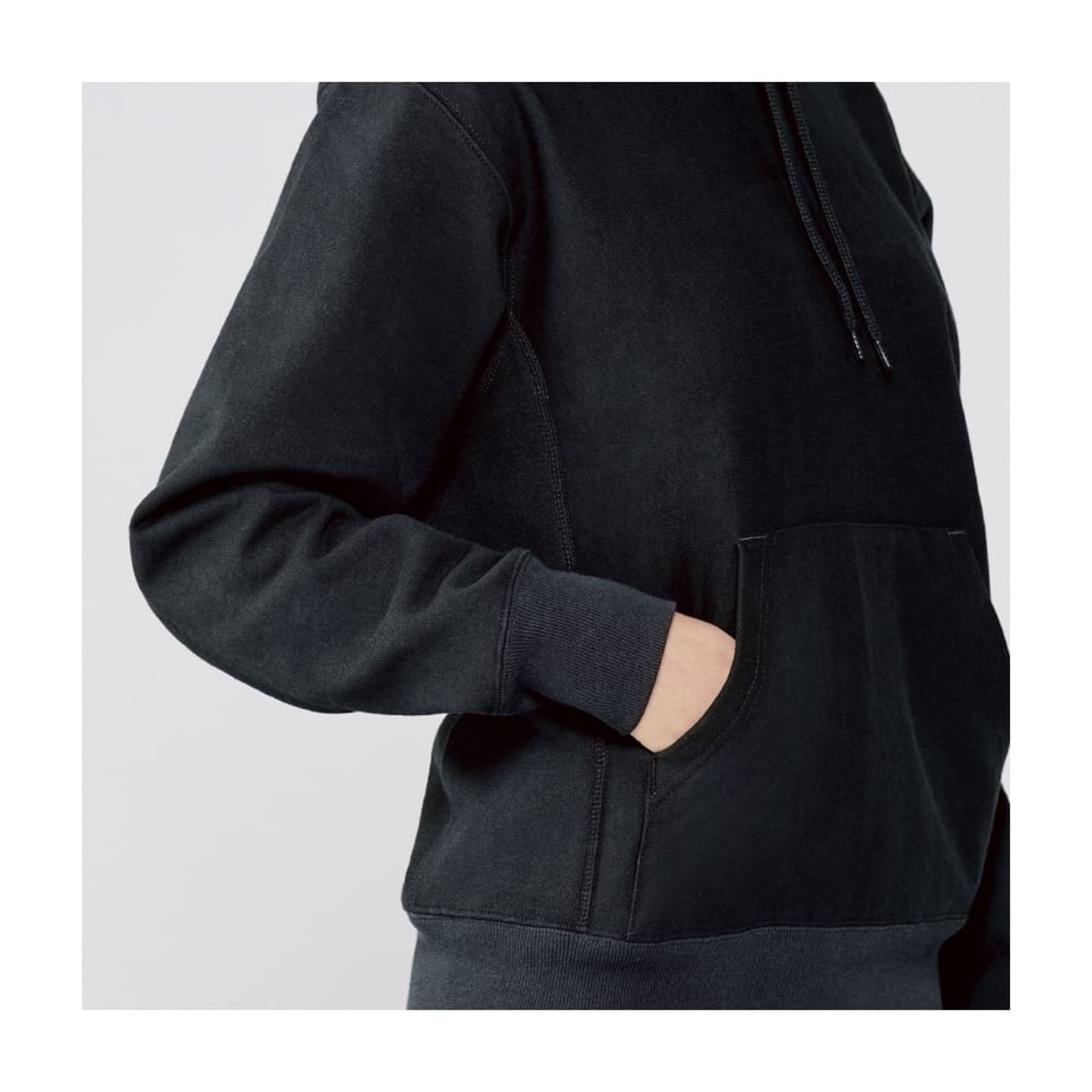 高密度に編み上げた12.0オンスの厚手素材を使用し、内側は保温性の高い裏起毛仕様。冷えを防ぎながらも柔らかく軽い着心地を実現しています。フードは二重構造で型崩れしにくく、カンガルーポケット付きで機能性も抜群。刺繍やプリント加工に最適な表面感で、チームや企業ユニフォームにもおすすめです。