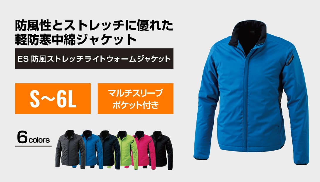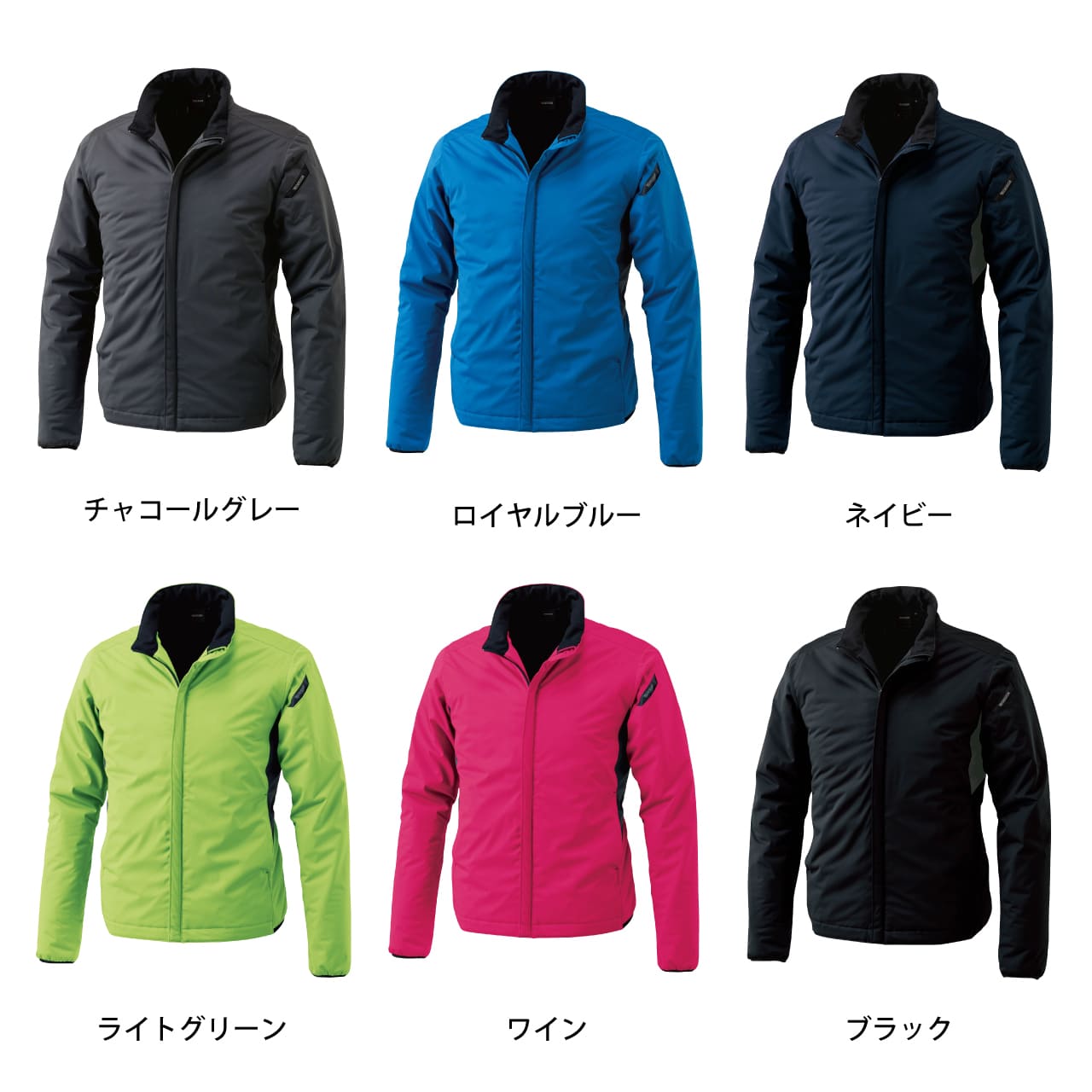 防風素材×ストレッチで快適性と保温性を両立。中綿入りながら軽量で動きやすく、冬場の作業にも対応します。JIS規格 T8118適合の帯電防止仕様で、静電気を抑えて安全性を確保。ハンドウォーマーポケット、袖口仕様、裏地の滑らかな素材など、実用性を考えた設計が充実しています。胸・袖への刺繍加工もしやすく、オリジナルワークウェアのベースとしても最適です。