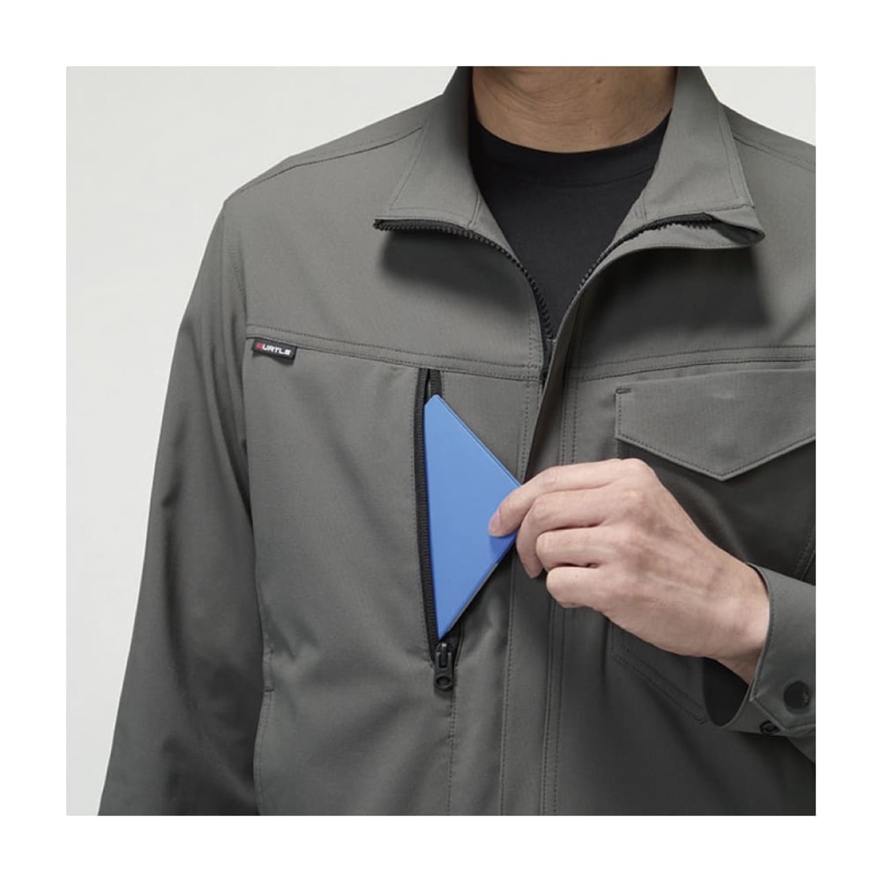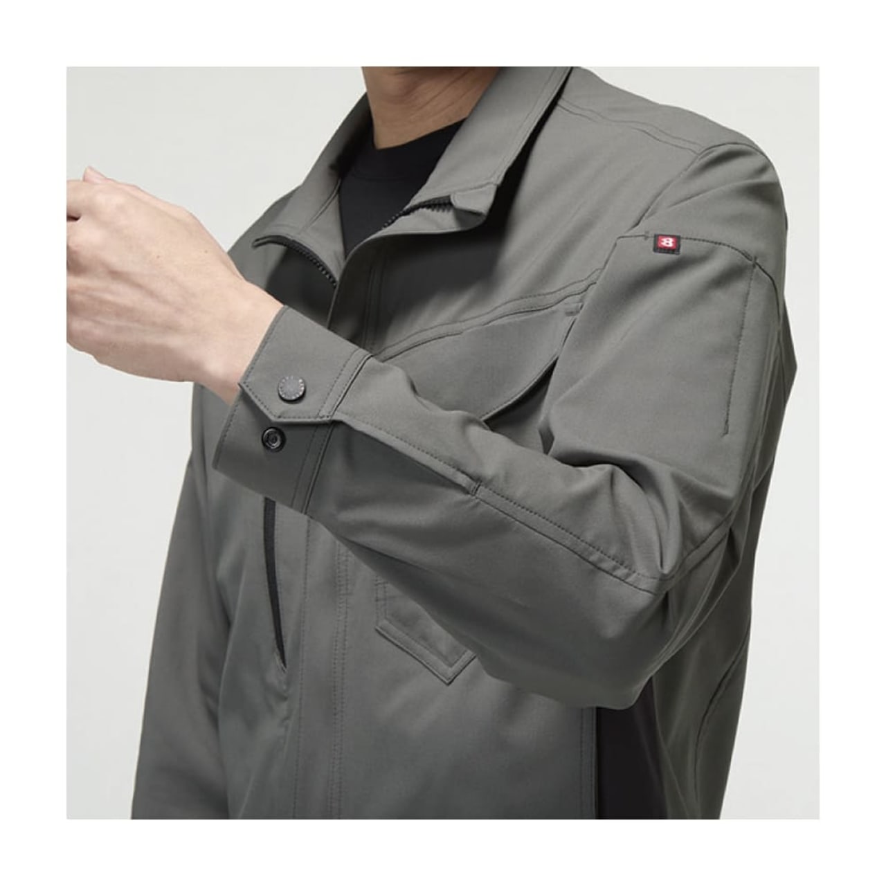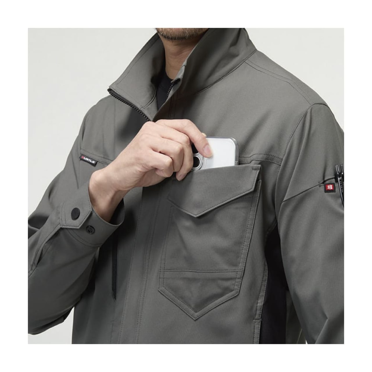 吸汗速乾・高通気・ストレッチ性を備えた夏対応の制電ケアモデル。ダブルジップ仕様に加え、胸元と片腕には出し入れしやすい機能的ポケットを装備。レベルブックやPhone収納も完備した、現場主義のスリムジャケットです。