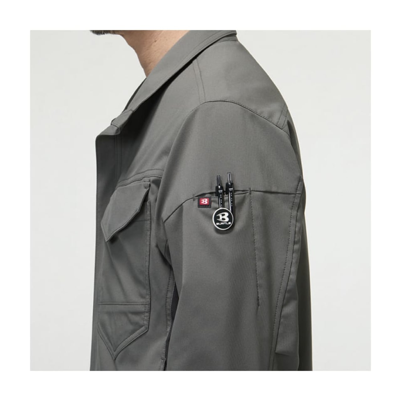 | □胸ペンさし、袖ペンポケット(左) |