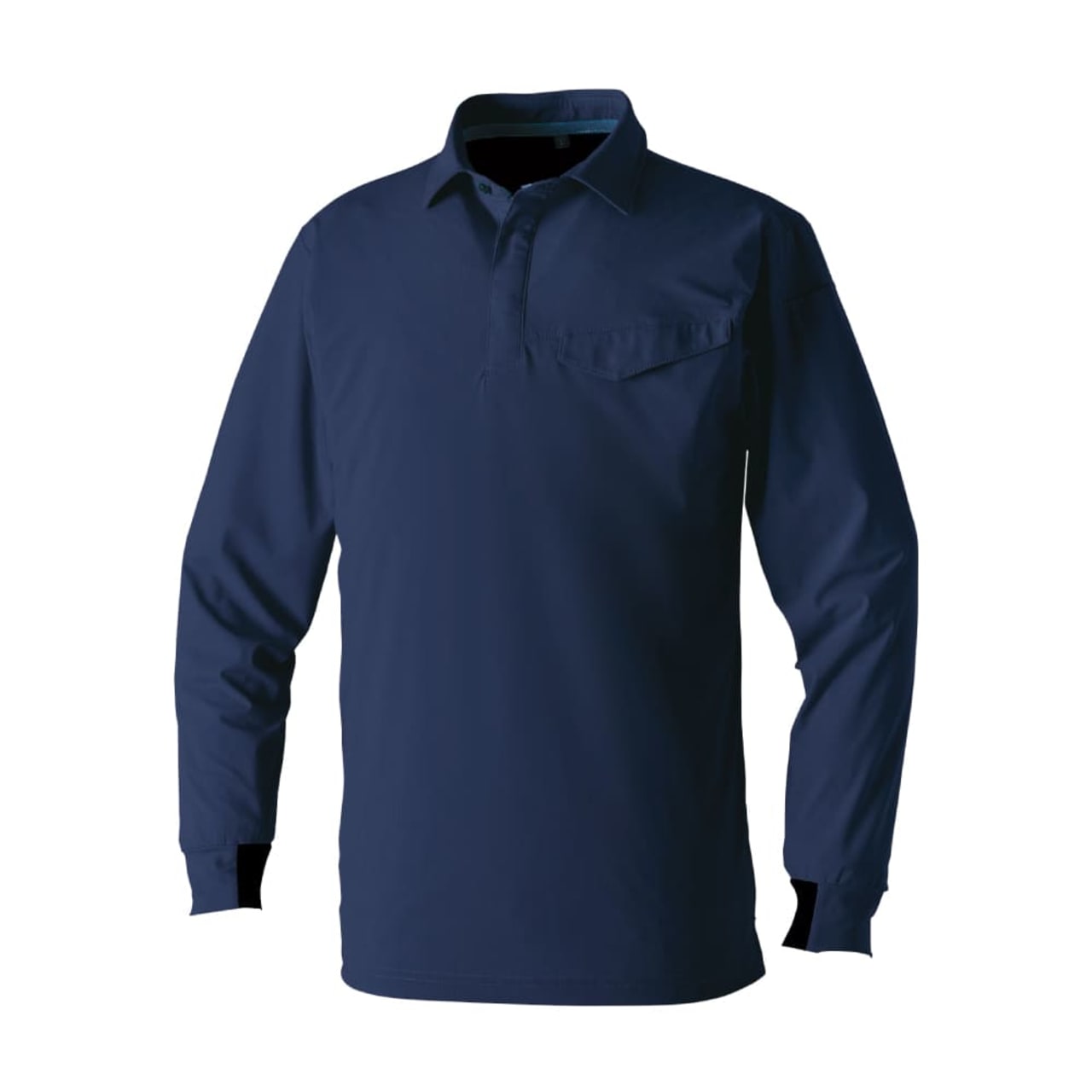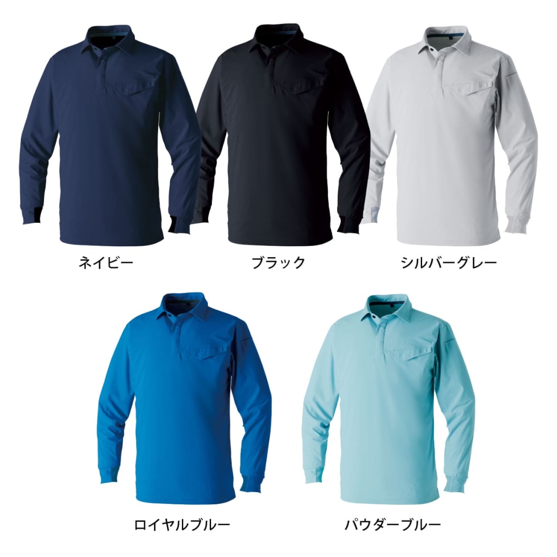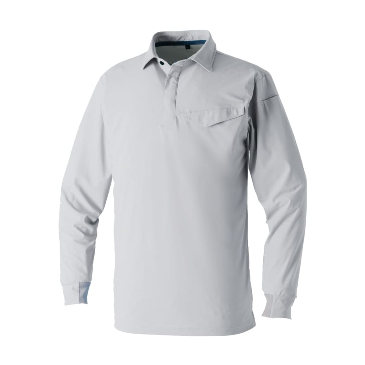 接触冷感素材と消臭テープで夏場も快適。台襟仕様と隠しドットボタンが清潔感を演出します。収納力抜群のビッグ胸ポケット、袖ペン差し、袖口リブ、サイドスリットなど、現場の声を反映した実用ディテールが満載。