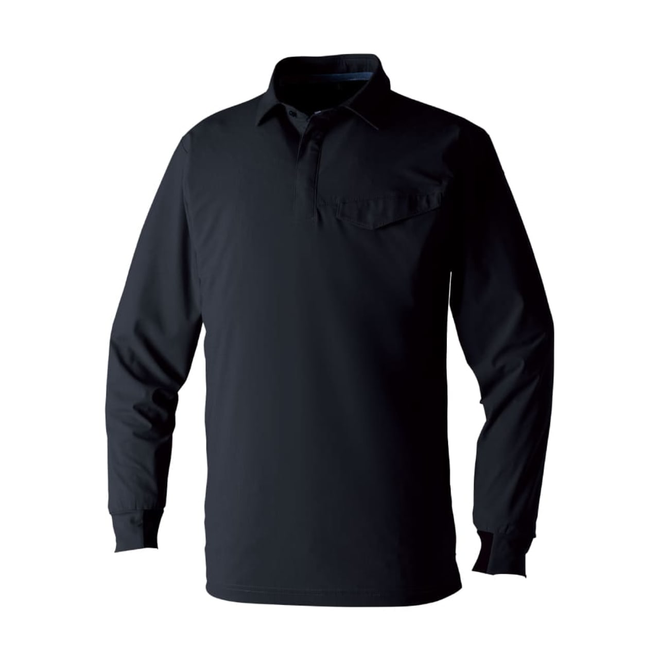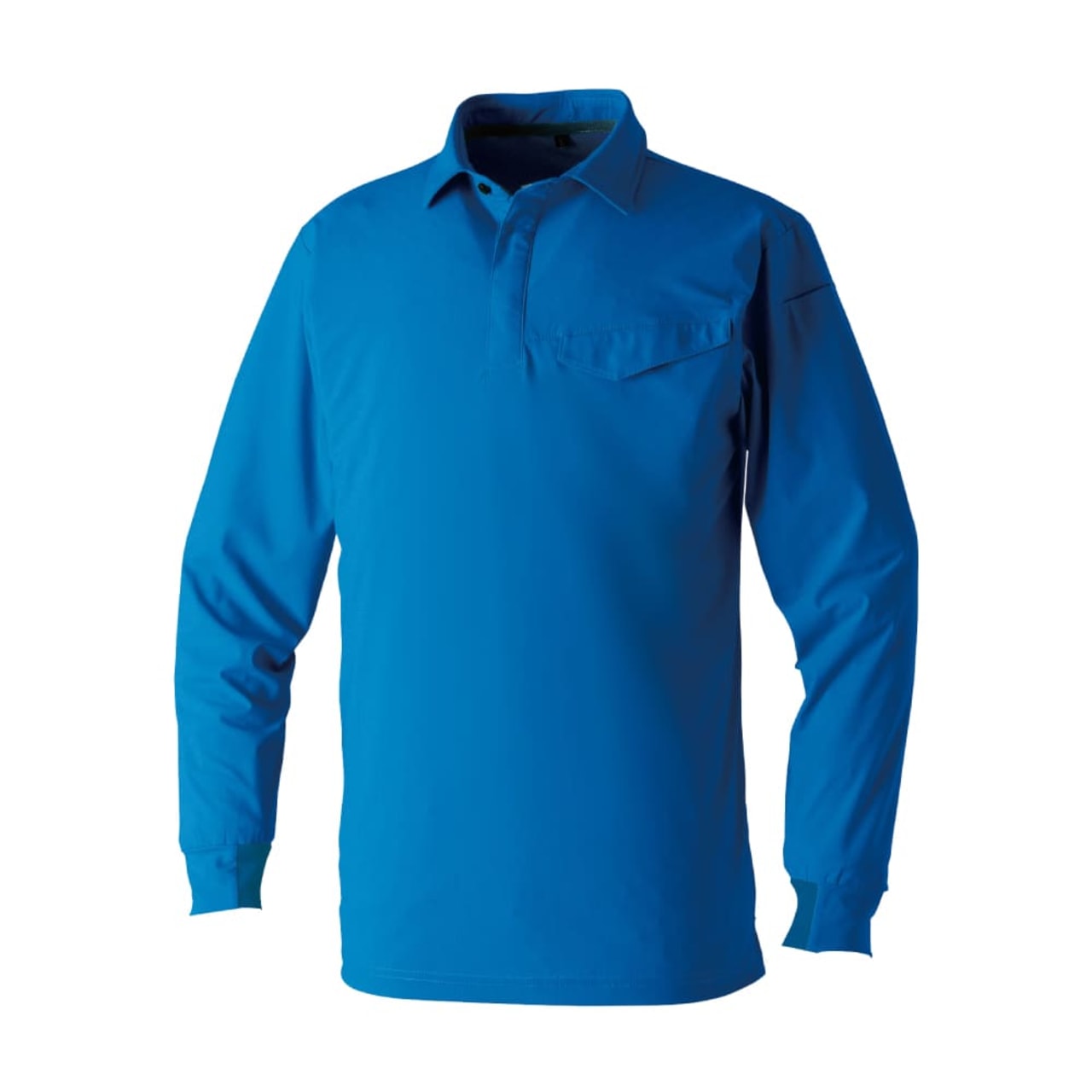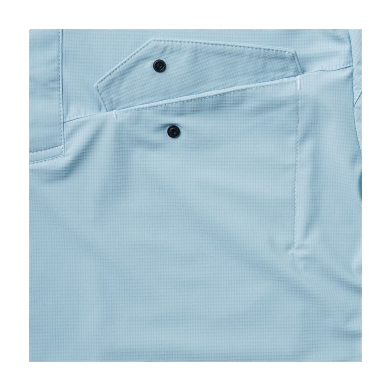 接触冷感素材と消臭テープで夏場も快適。台襟仕様と隠しドットボタンが清潔感を演出します。収納力抜群のビッグ胸ポケット、袖ペン差し、袖口リブ、サイドスリットなど、現場の声を反映した実用ディテールが満載。