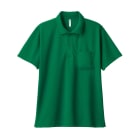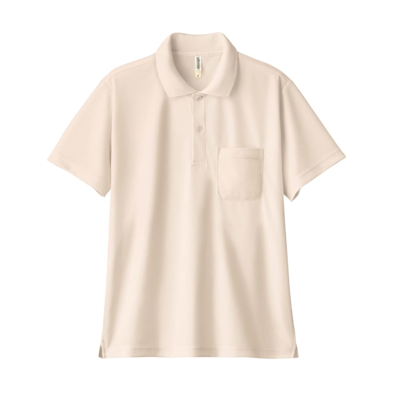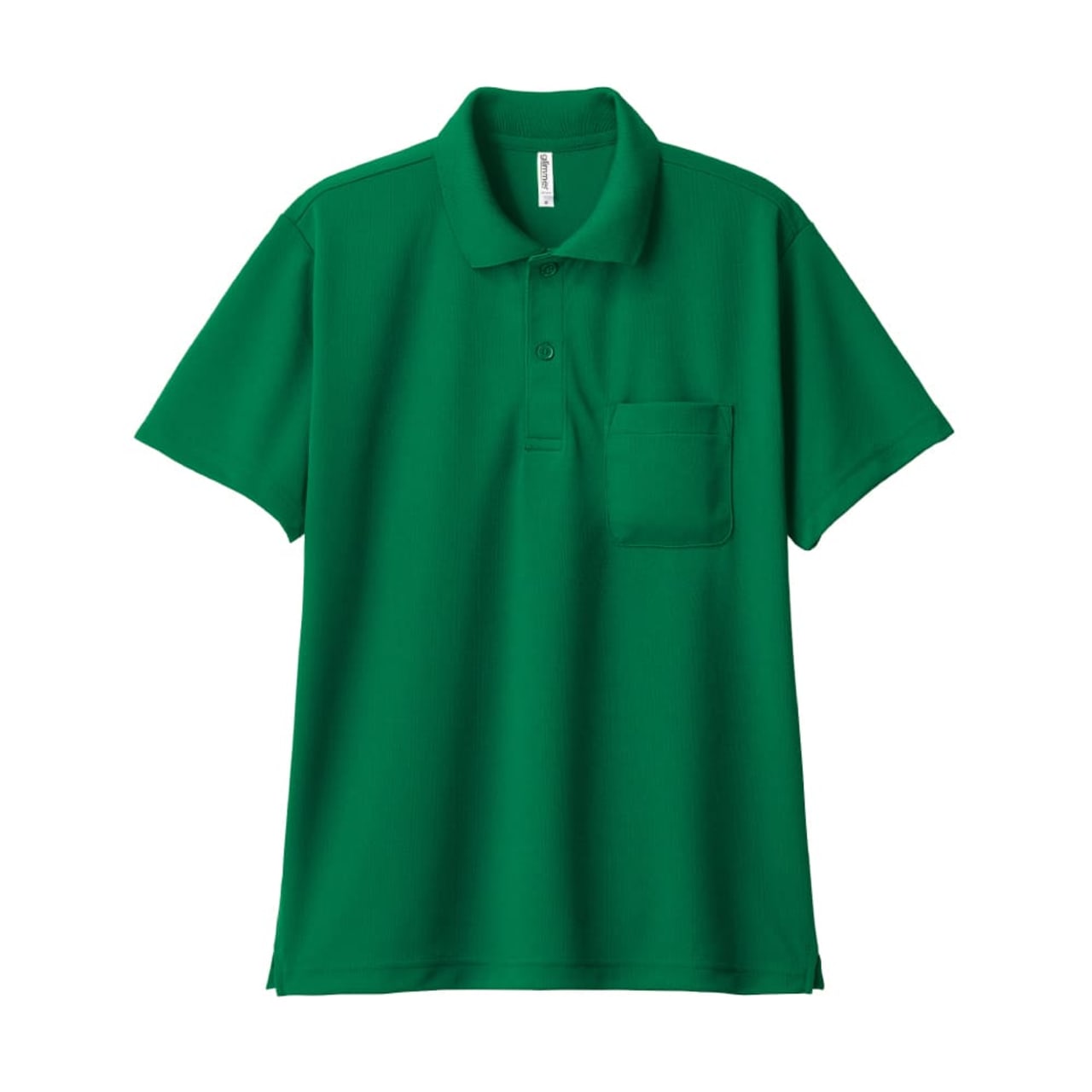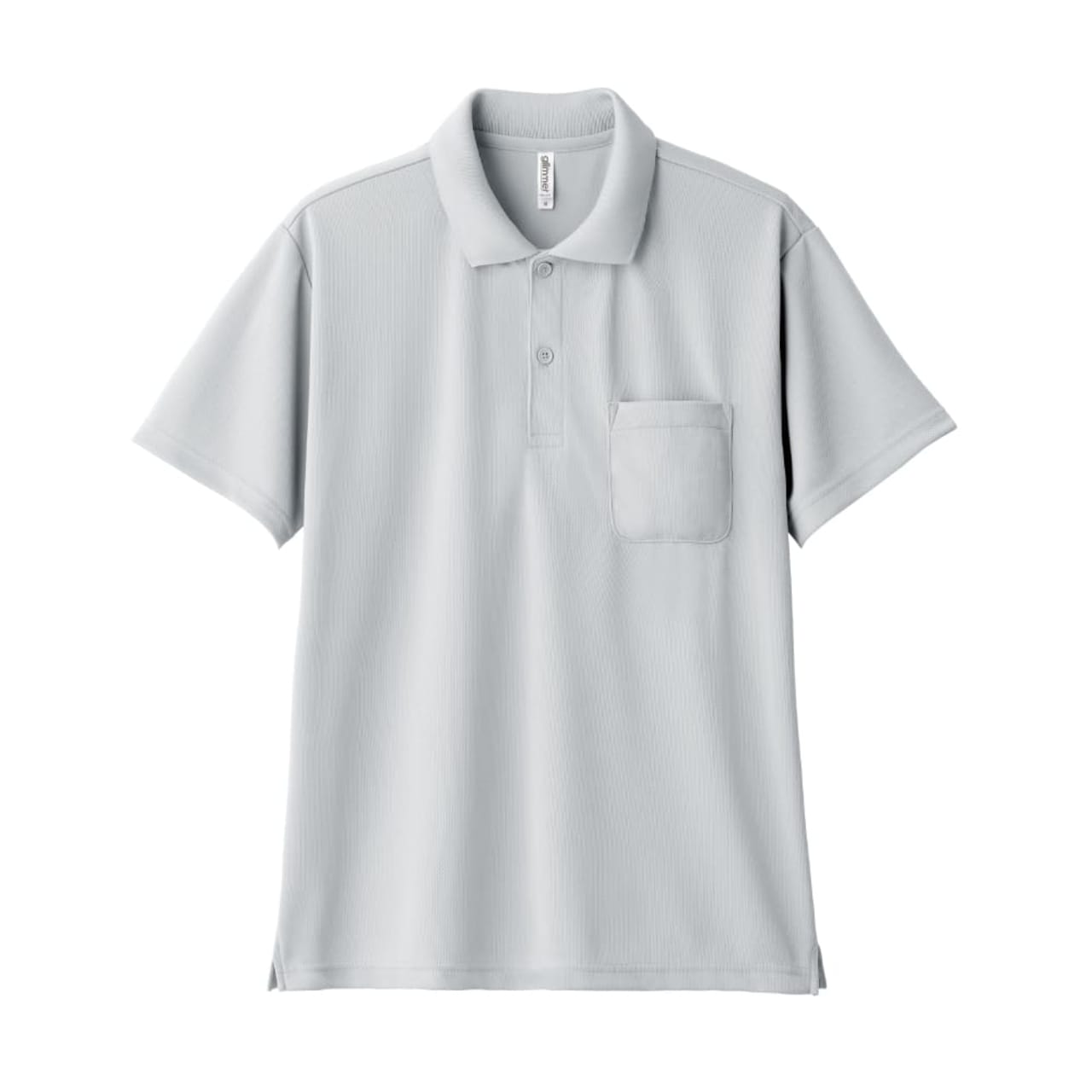 汗を吸収してすぐに乾き、UVカット機能も備えています。ポケット付きタイプで、ボタンは全体と同色を使用。