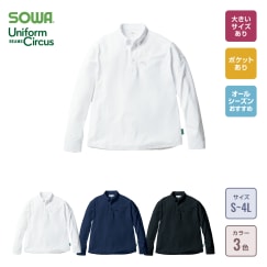 "BEAMS Circusが贈る品格。ブランドの美意識を、貴社の刺繍ロゴで完成させる。 人気ブランド「Uniform BEAMS Circus」による、シャツ仕立ての長袖ポロシャツです。ボタンダウンの襟元や袖口の仕様など、随所にこだわりが光る一着は、法人様の顔となるユニフォームに最適。